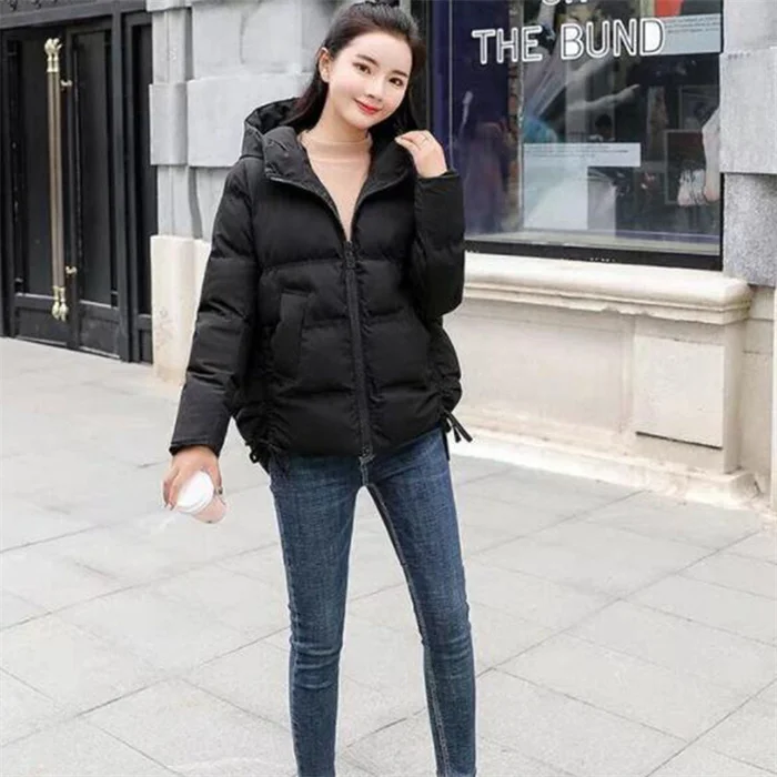 Новинка 2021, зимняя пуховая хлопковая верхняя одежда Miss, Короткая свободная Женская куртка на молнии с карманами и капюшоном, Повседневная Женская Студенческая хлопковая куртка