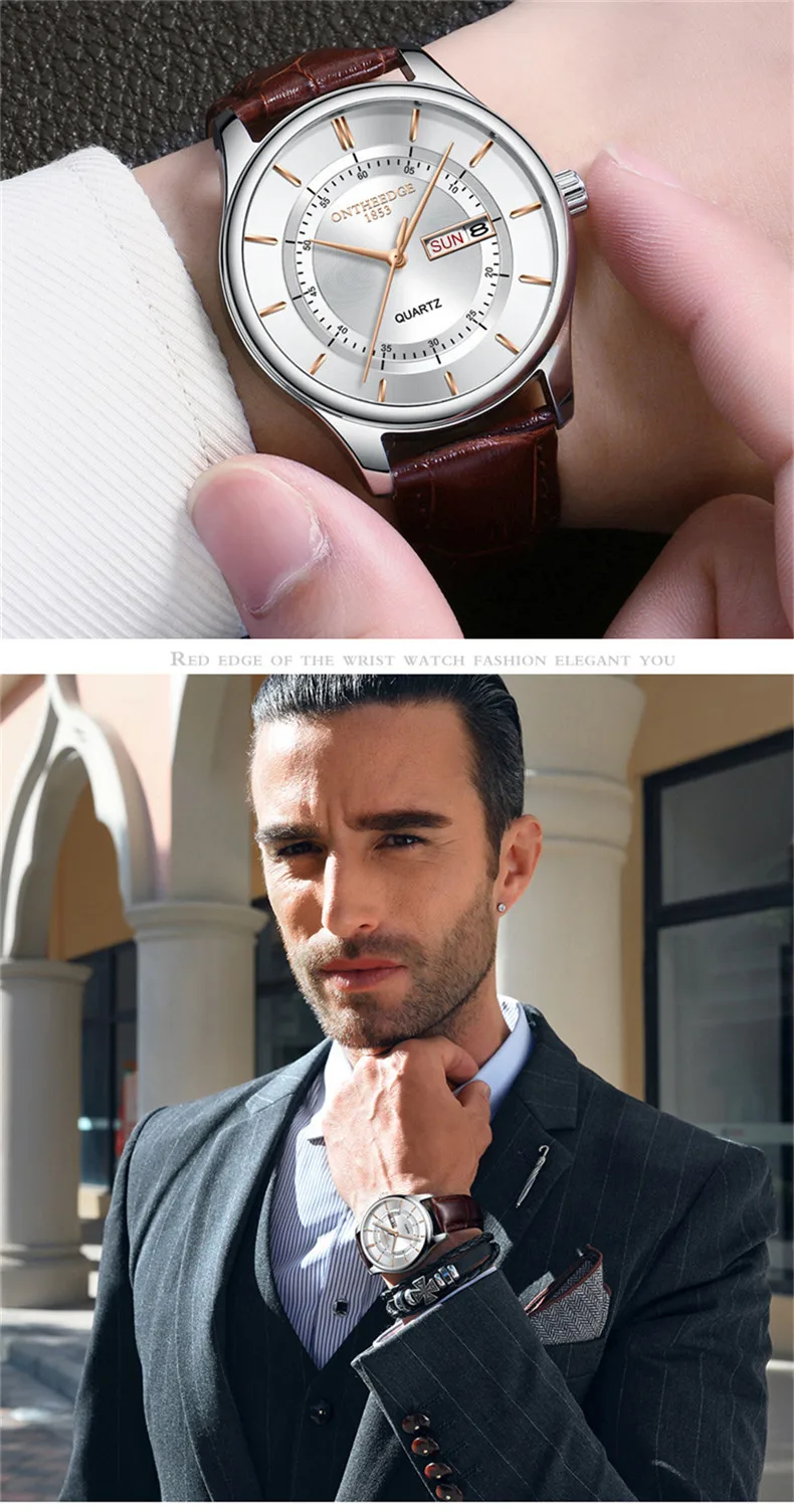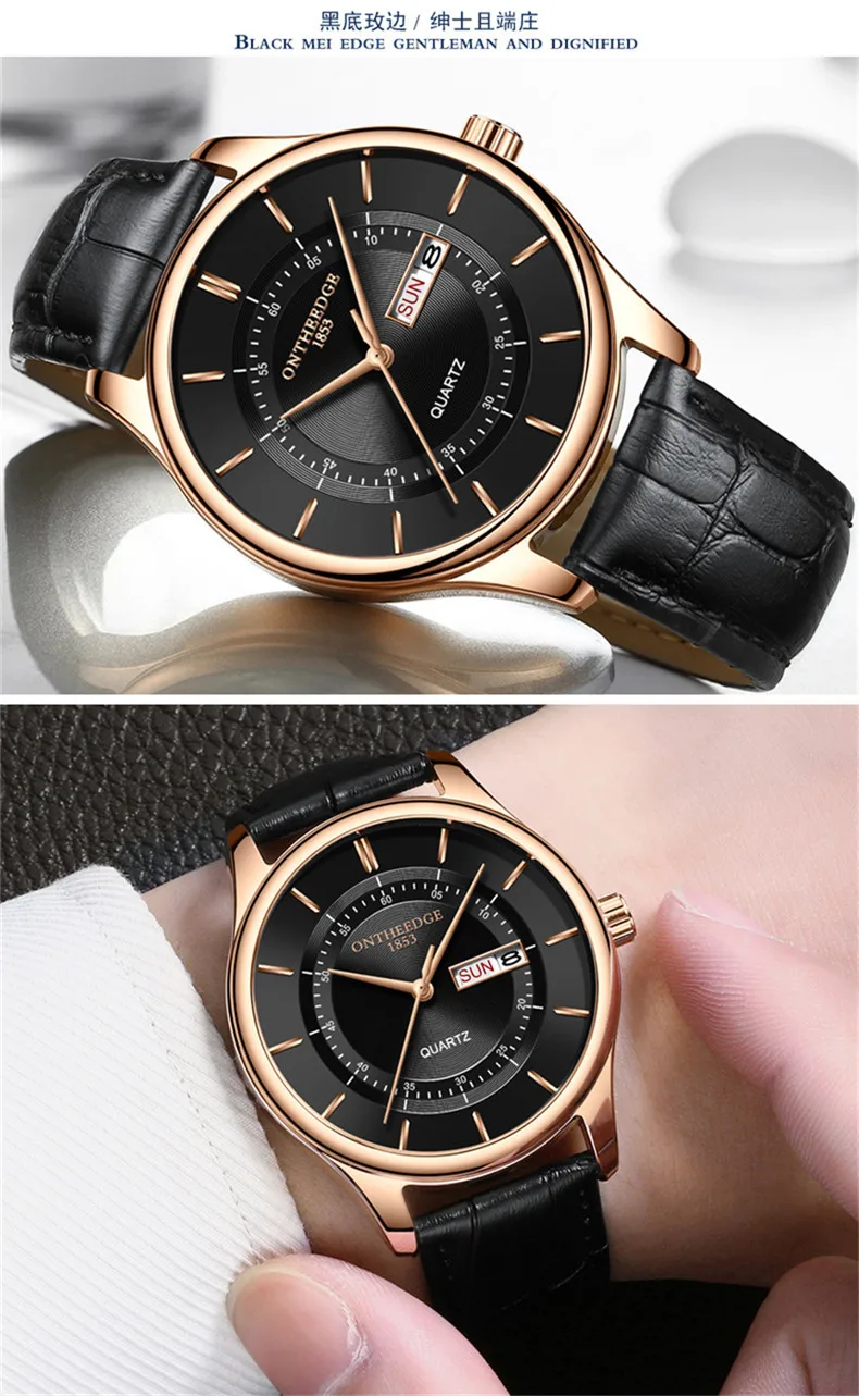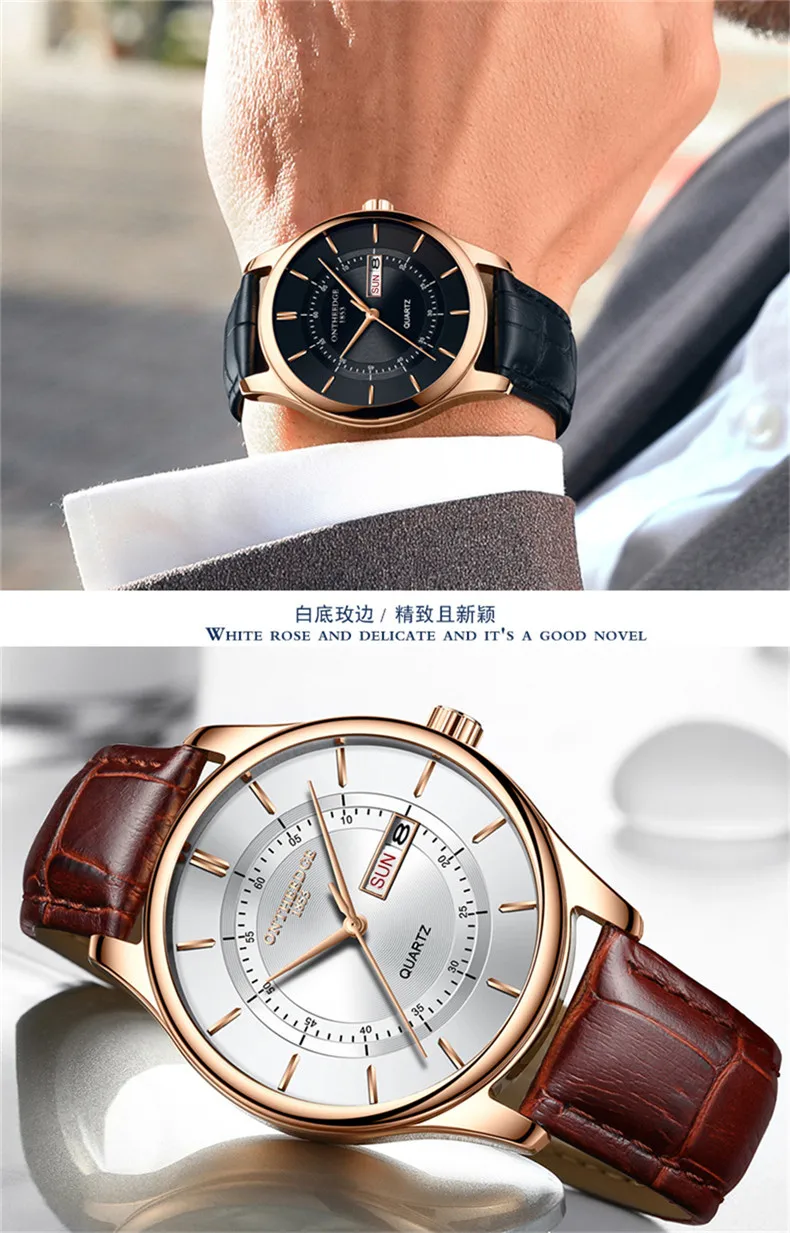 Часы мужские кварцевые под розовое золото, водонепроницаемые, с кожаным ремешком, с автоматической датой, 2021