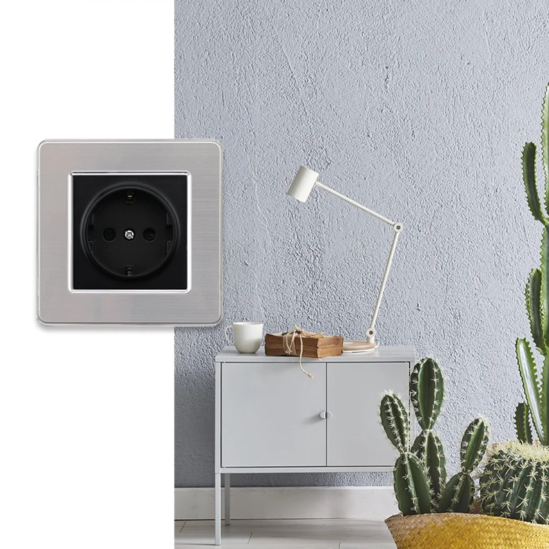 Электрическая розетка с алюминиевой матовой панелью, 86-250 В
