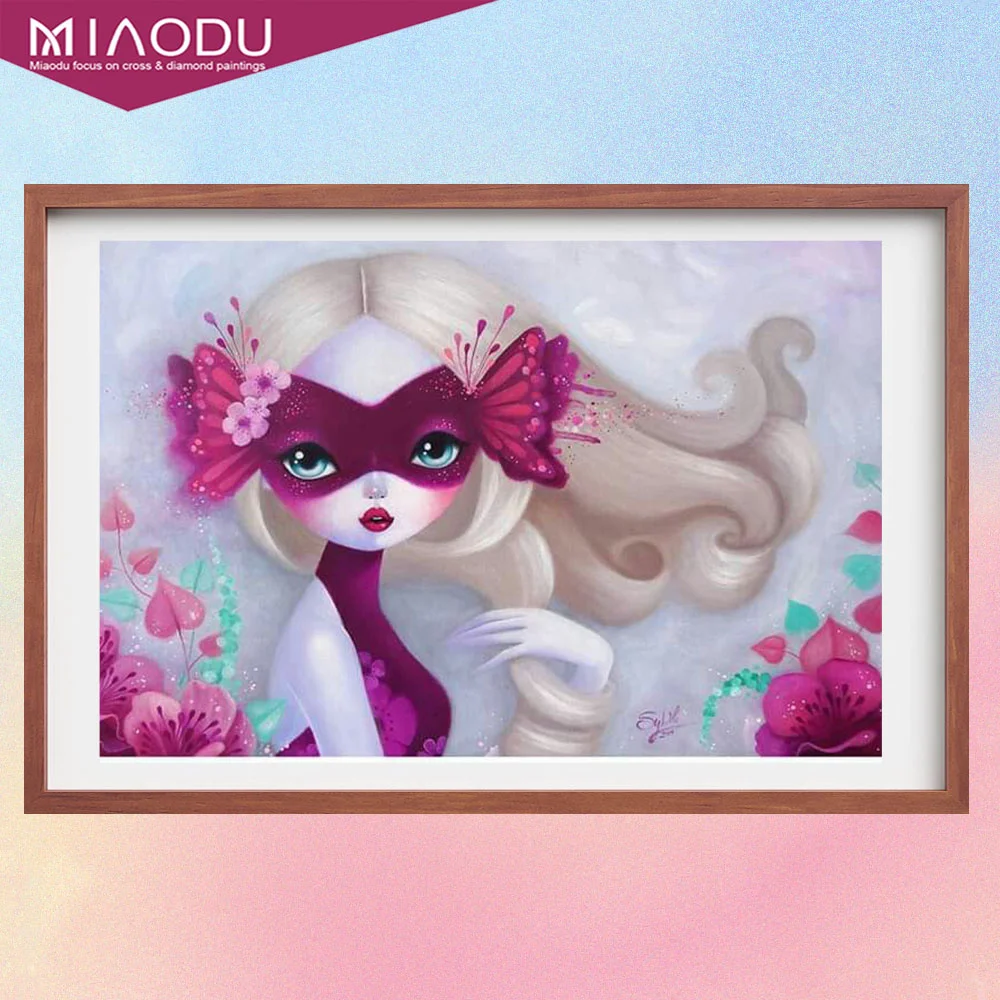 Алмазная 5D картина маскированная девушка с большими глазами с цветами, наборы для вышивки крестиком, мозаика ручной работы, домашний декор, подарки для девушек