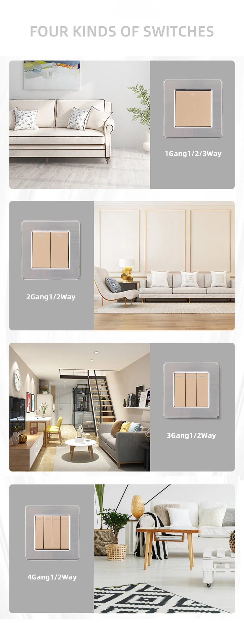 Золотистый настенный высветильник ель света с нажимными кнопками, из нержавеющей стали выключатель света выключатели света 220v включатель света переключатель света кнопочный выключатель кнопка выключатель включатели
