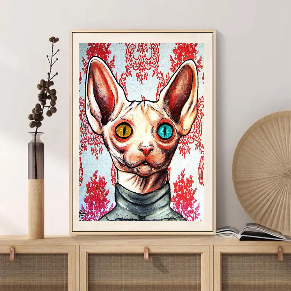 Абстрактная картина с тремя глазами, сфинкх, кот тотем, 5D, алмазная живопись, наборы для вышивки крестиком, вышивка, искусство, мозаика, полная картина, домашний декор