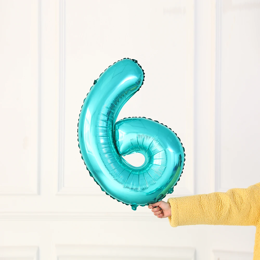 32-дюймовые бирюзовые строительные цифровые воздушные шарики 0-9, у...