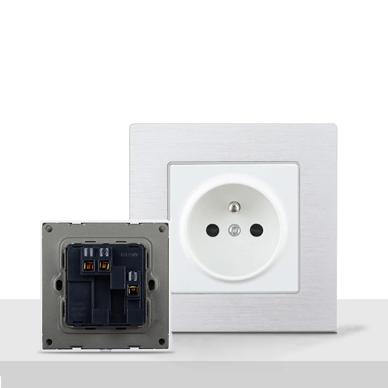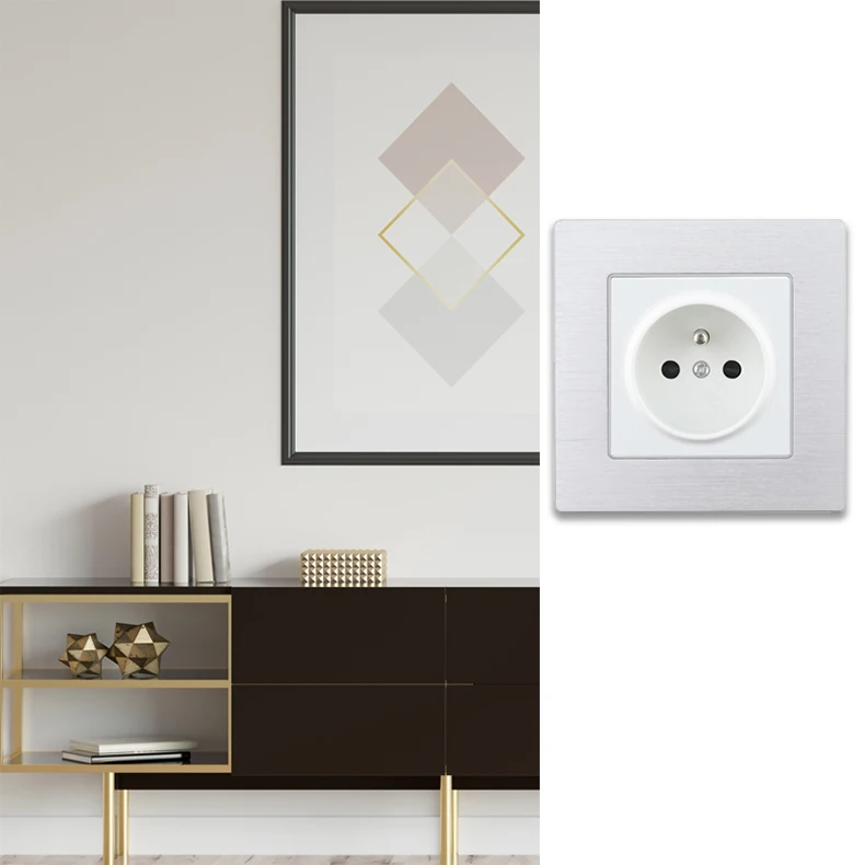 Электрическая розетка с французской вилкой и алюминиевой матовой панелью, 86 видов, 110-250 в перем. Тока, 16 А розетки электрические заглушки для розеток разетки настенные заглушка для розетки вилка электрическая