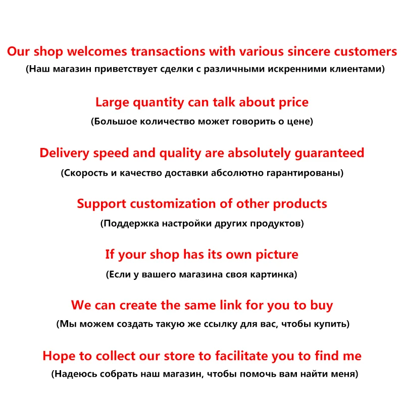1. О службе поддержки клиентовУважаемый покупатель, если у вас есть какие-либо вопросы, пожалуйста, свяжитесь с нами. И мы ответим в течение 24 часов, кроме выходных. Если вы не удовлетворены нашим продуктом и обслуживанием, пожалуйста, свяжитесь с нами, прежде чем оставить отрицательный отзывы, тогда мы постараемся сделать все возможное, чтобы решить проблемы и сделать вас удовлетворенными.2. О различиях в цвете и размерахВырезать, сделать, измерение может привести к отклонению размера (плюс и minus1-2cm колебания), цвет аберрации из-за мониторов, погоды, освещения и других факторов, изображения будут иметь разные цвета на разных мониторах, но это не влияет на внешний вид картины, пожалуйста, поймите.3. О алмазной добавкеУ нас есть 20-30% дополнительных алмазов в каждой упаковке, мы имеем хороший контроль качества, если вы обнаружили отсутствие алмазов, первая отправка на нас. Мы можем отправить вам бесплатно. После отправки вам придется оплатить доставку. Свяжитесь с нами через сообщение или через торгового менеджера.