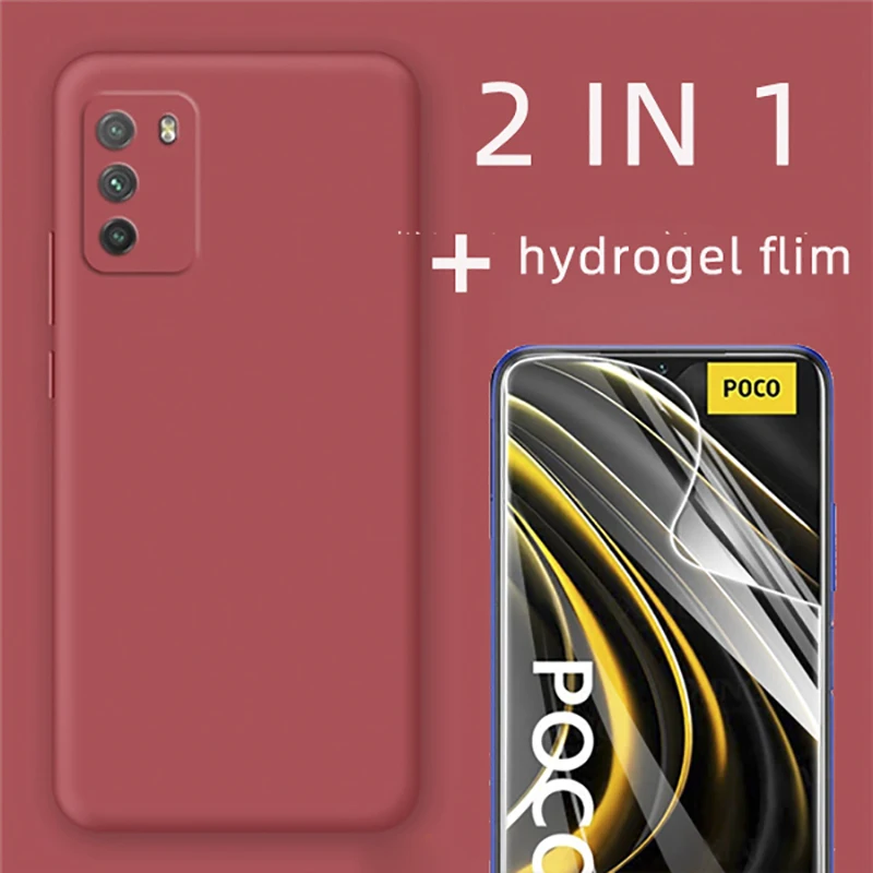 Чехол Poco M3 Poco M 3 Pocom3 Poco 3 m, жидкий силикон, Гидрогелевая пленка для защиты экрана камеры, чехол для Xiaomi Poco M3 M 3 Pocom3