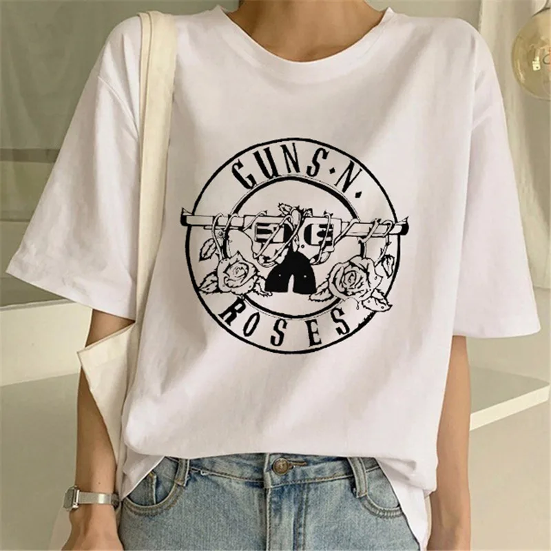 Женская футболка с принтом GUNS and рок-группа, розы, летняя футбол...