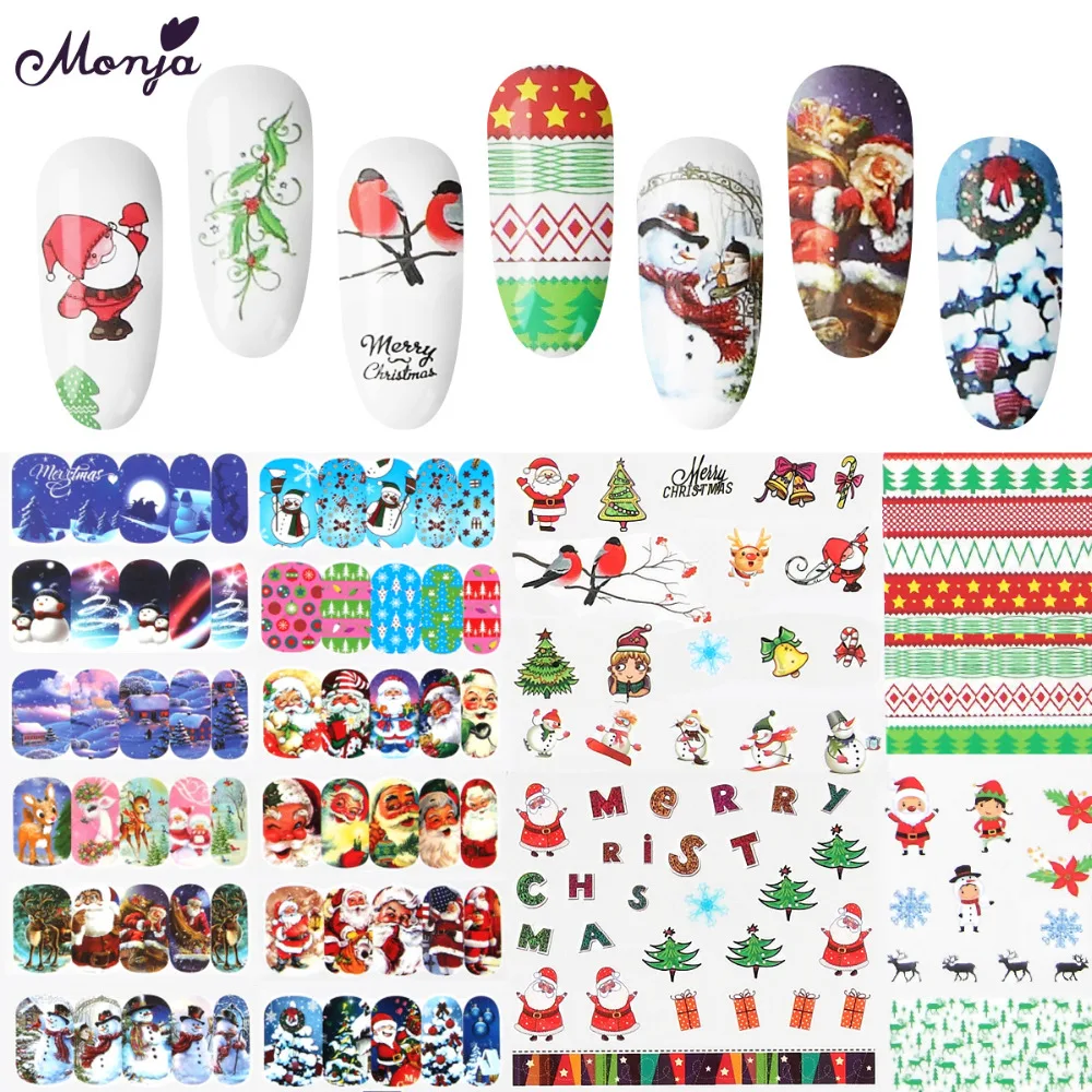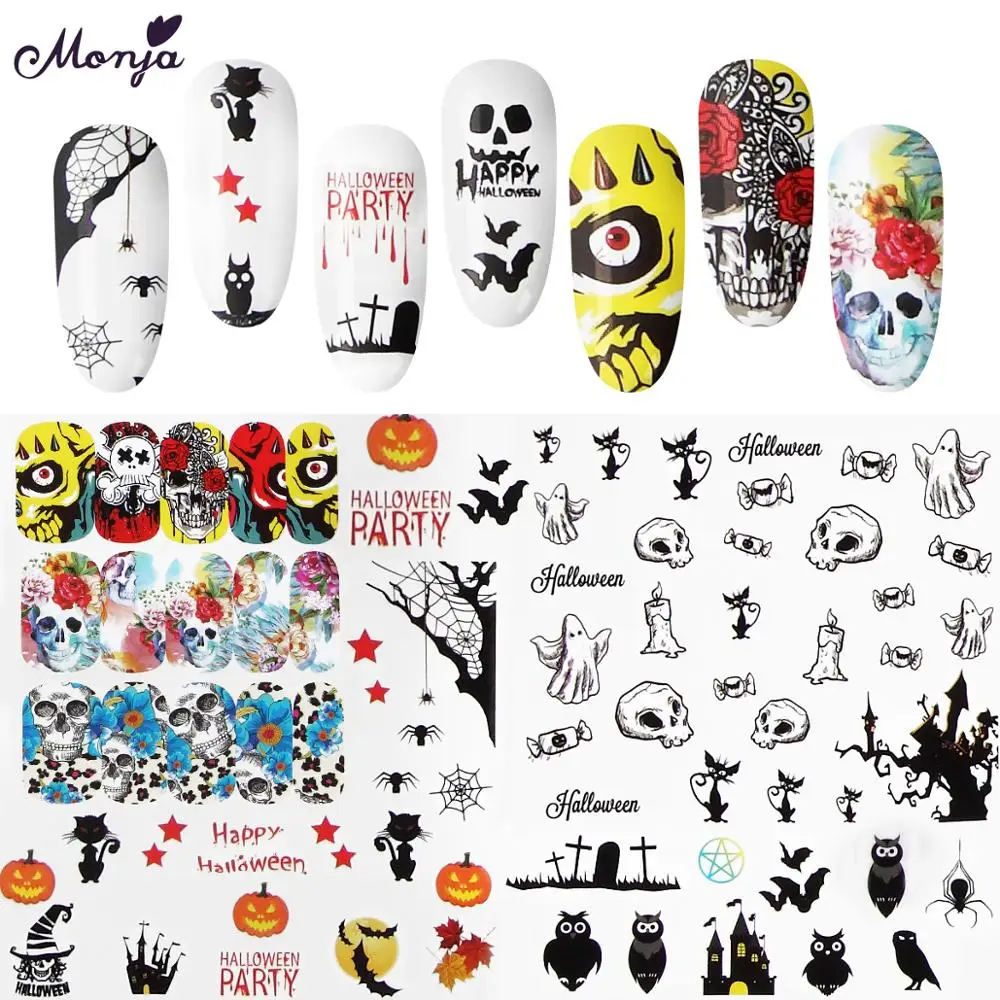Переводная наклейка для ногтей Monja, серия Рождество, Хэллоуин, разные узоры, сделай сам, водяной знак, наклейки для ногтей, украшение для маникюра