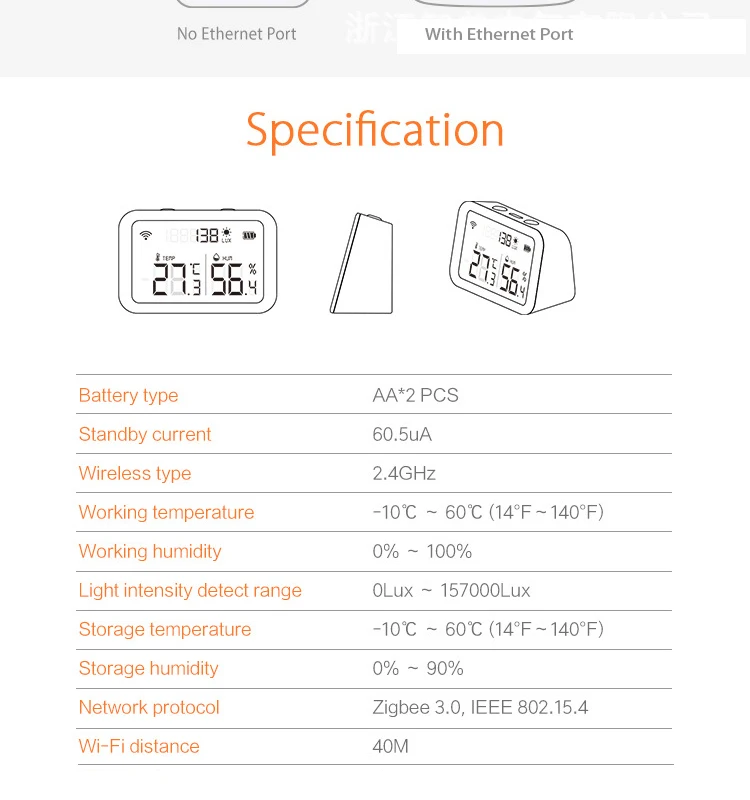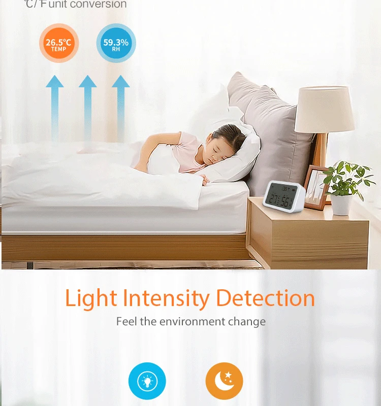 Детектор температуры и влажности Zigbee, Wi-Fi, с ЖК-дисплеем