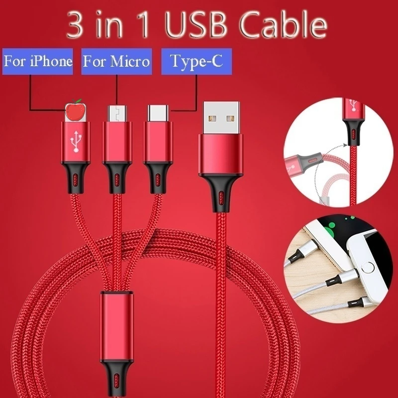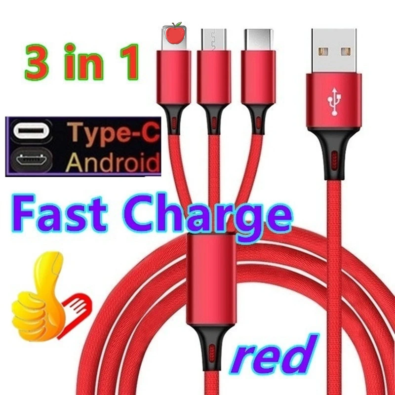 Лидер продаж, кабель для передачи данных 1,2 м для Android IPhone 3 в 1, кабель с несколькими разъемами типа C, Micro USB, синхронная Быстрая зарядка