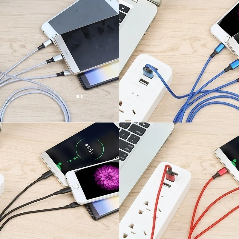 3 в 1 Micro USB Type C зарядный кабель с несколькими USB-портами, з...
