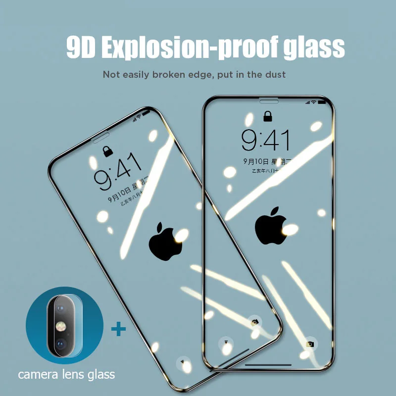 2 в 1 9D Защитная стекло для iPhone 12 11 Pro Max 7 8 6 6s Plus Se ...