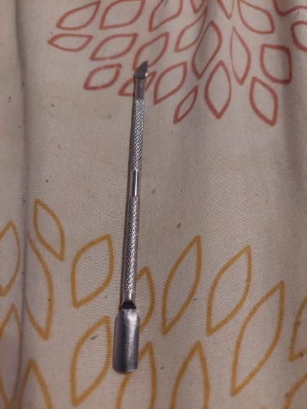 конец тупой, поэтому для кутикулы не особо подойдёт, упаковано было так себе (просто кинули в пакет)