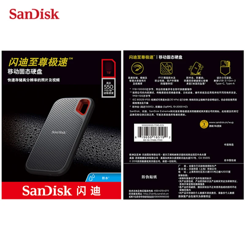Внешний жесткий диск SanDisk, портативный внешний SSD 2 ТБ, 1 ТБ, 5...