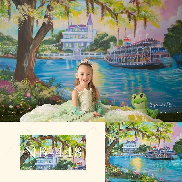 Сказочный фон для студийной фотосъемки с изображением детского дня рождения Фэнтези реки замка фонаря принцессы