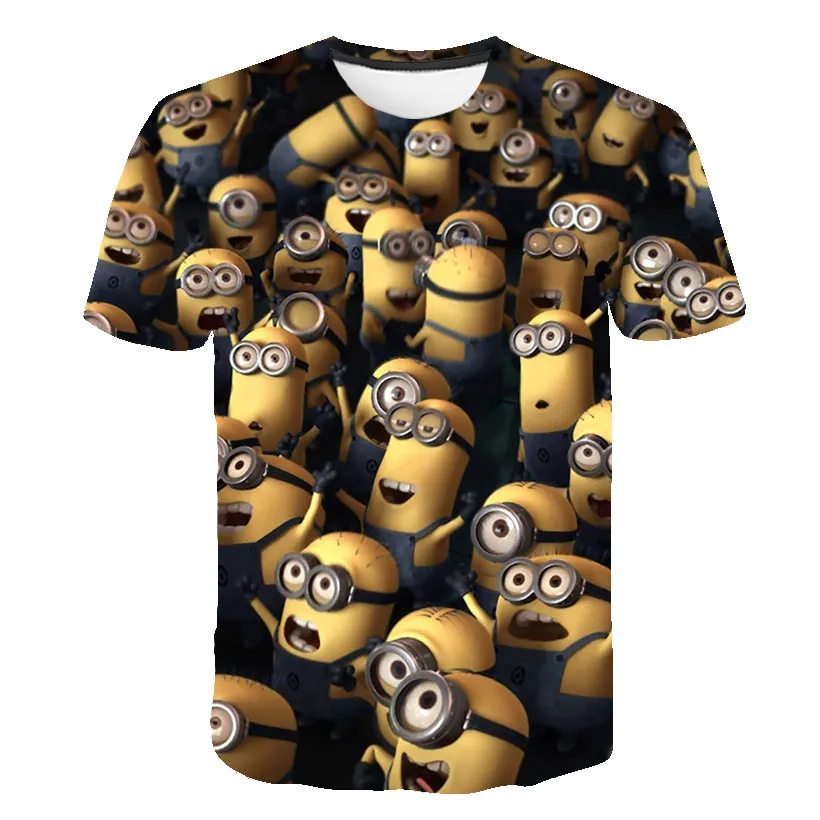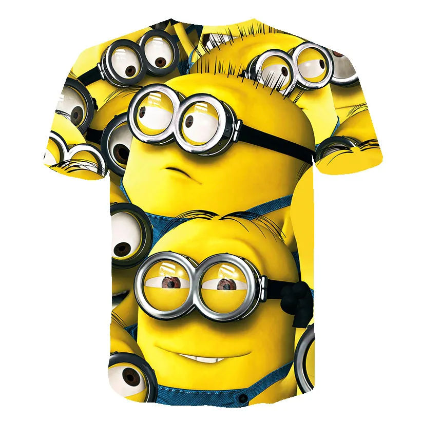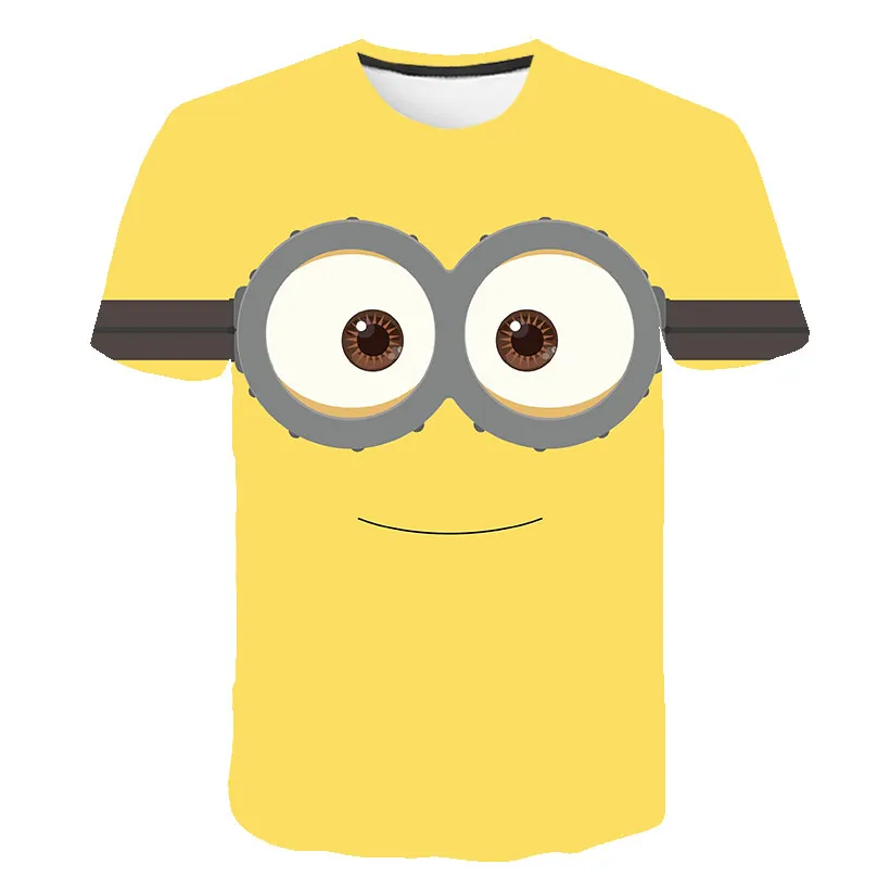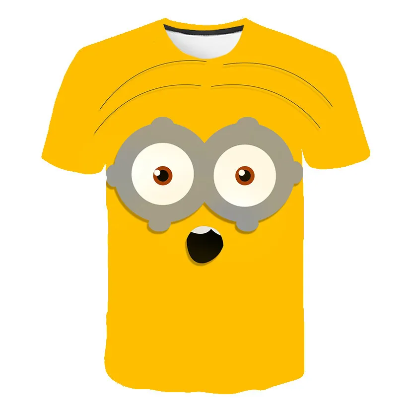 Детская Милая желтая футболка с коротким рукавом и мультяшным рисунком для мальчиков и девочек, футболки с 3D-принтом, Детские повседневные футболки и топы