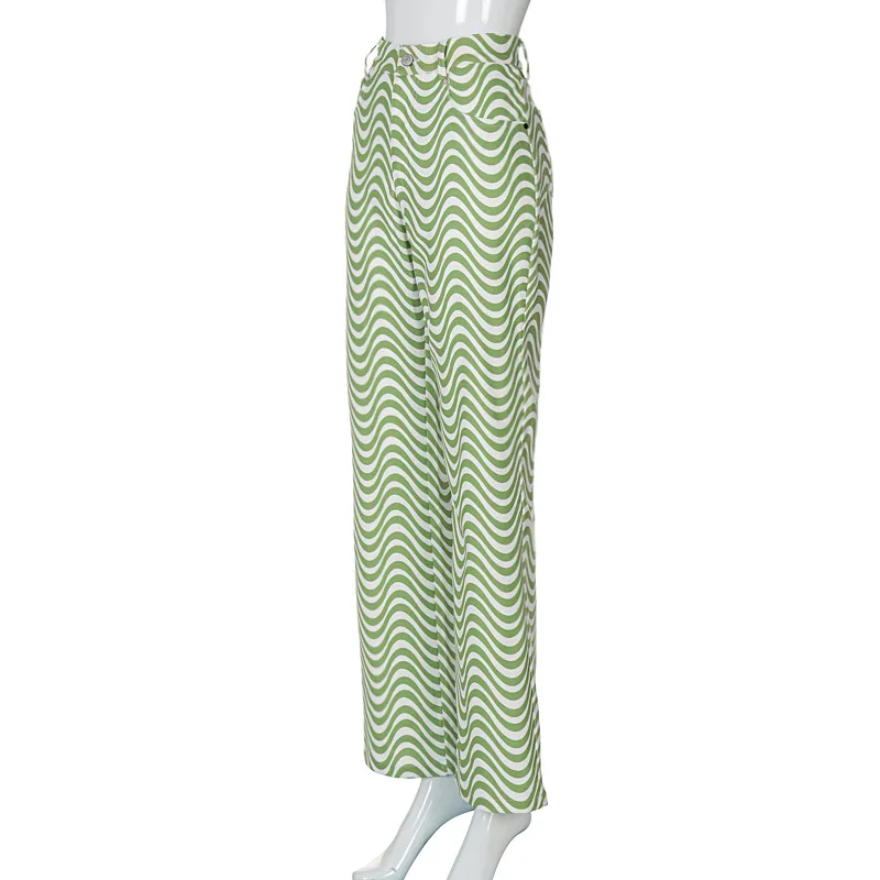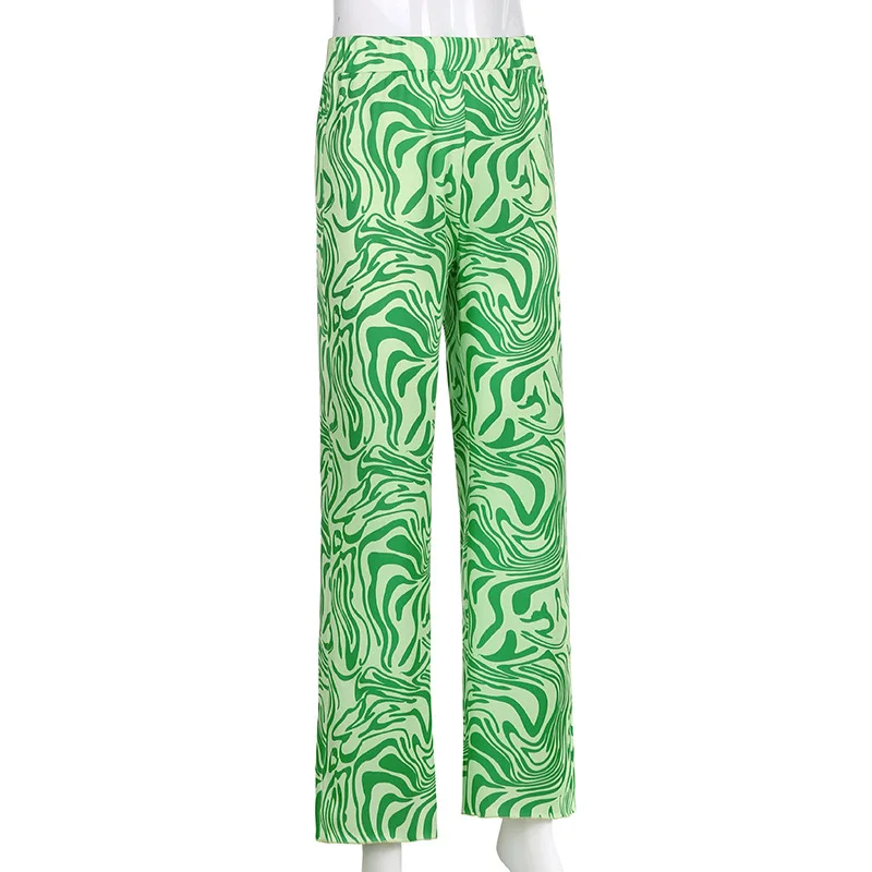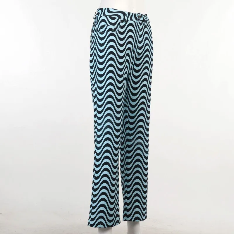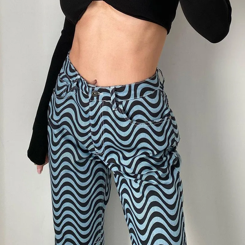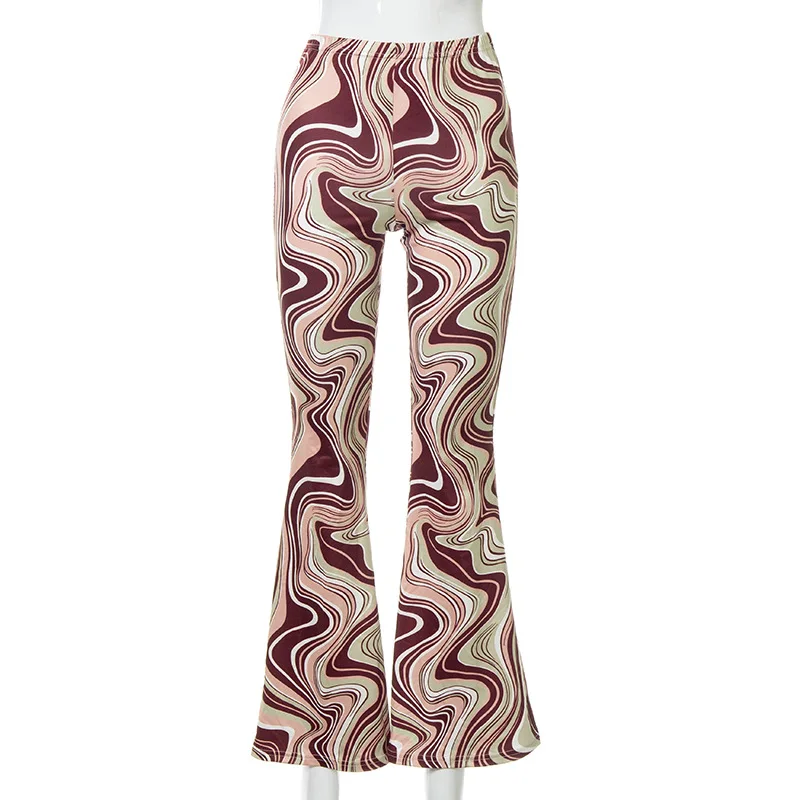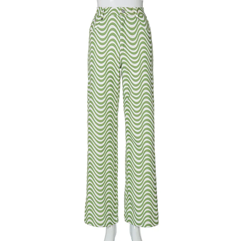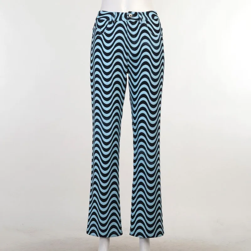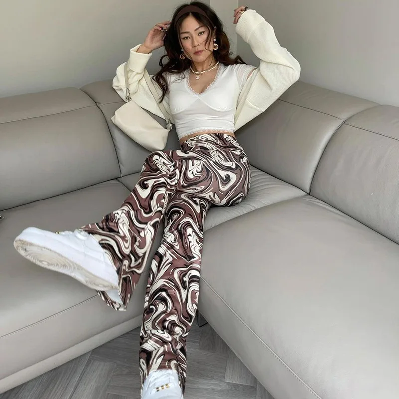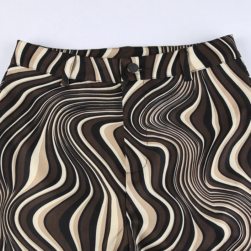 Женские расклешенные брюки Y2K с принтом, одежда с высокой талией и полосками зебры, брюки в клетку, уличная одежда, прямая одежда с принтом
