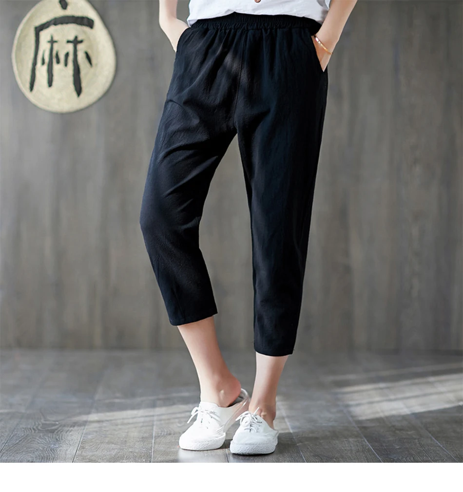Женские брюки-султанки из хлопка и льна, с высокой талией