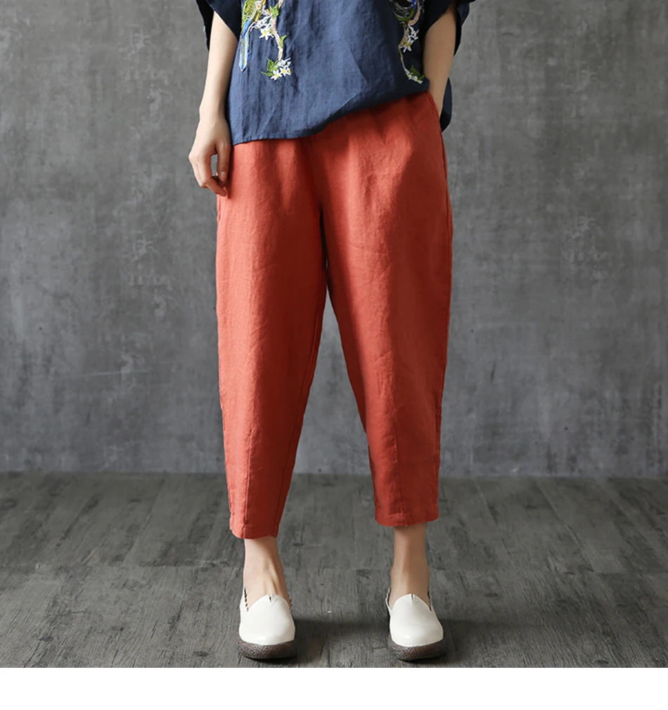 Брюки-султанки женские из хлопка и льна, однотонные штаны с кармана...