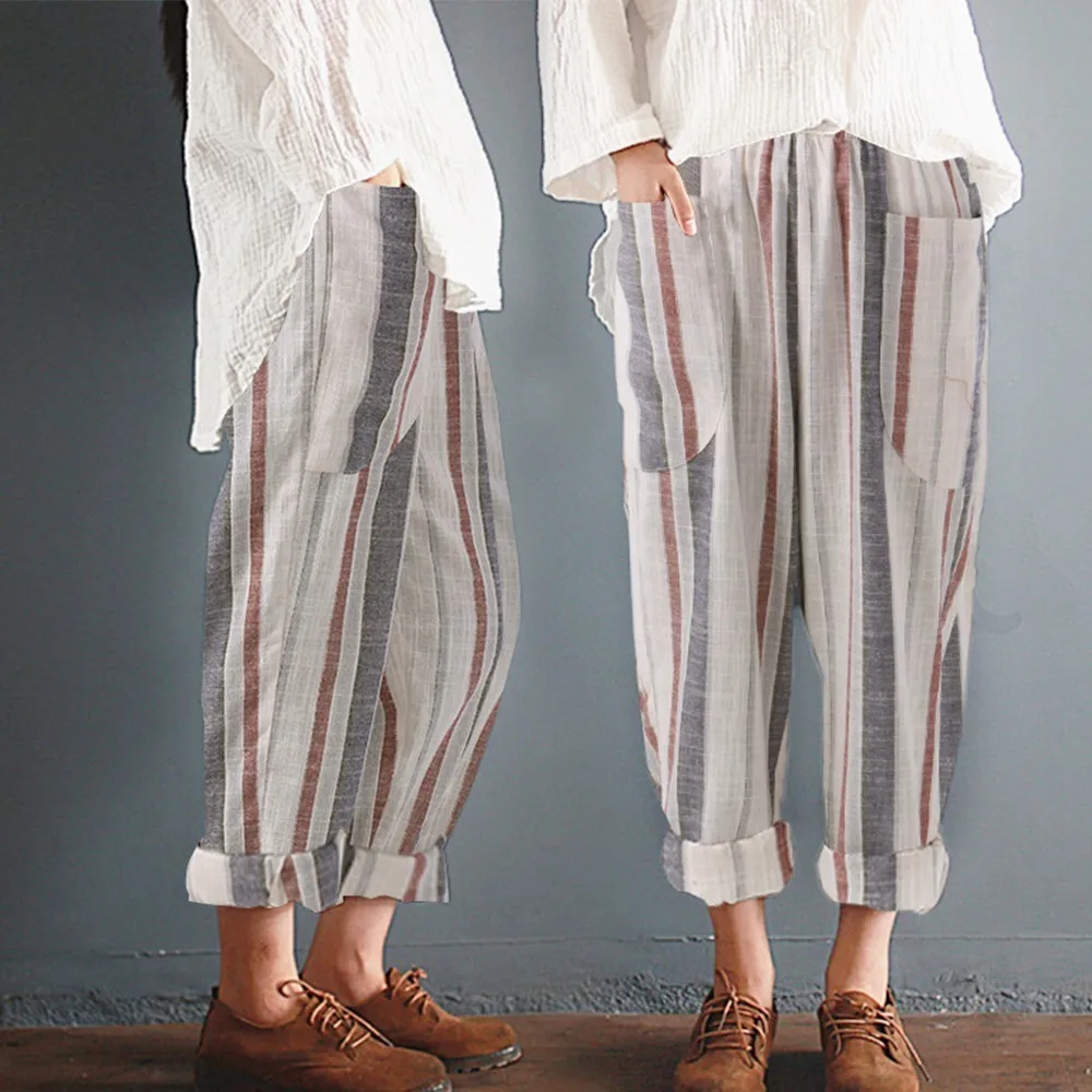 Брюки женские летние из хлопка и льна, свободные, с высокой талией,...