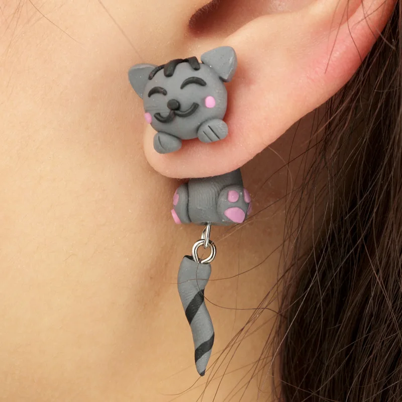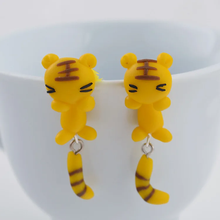 Милые мягкие серьги-гвоздики для Хэллоуина, ручной работы, ювелирные изделия в виде мультяшных животных, гвоздики из полимерной глины