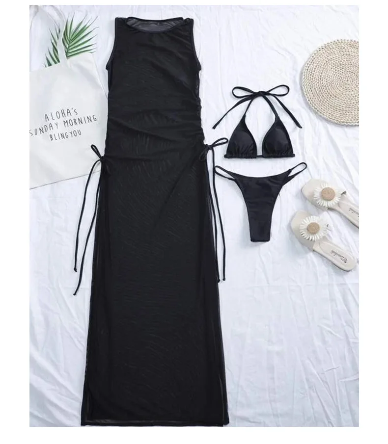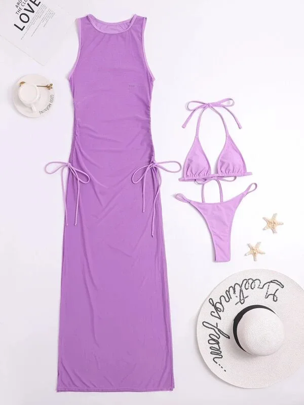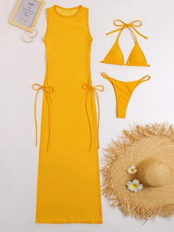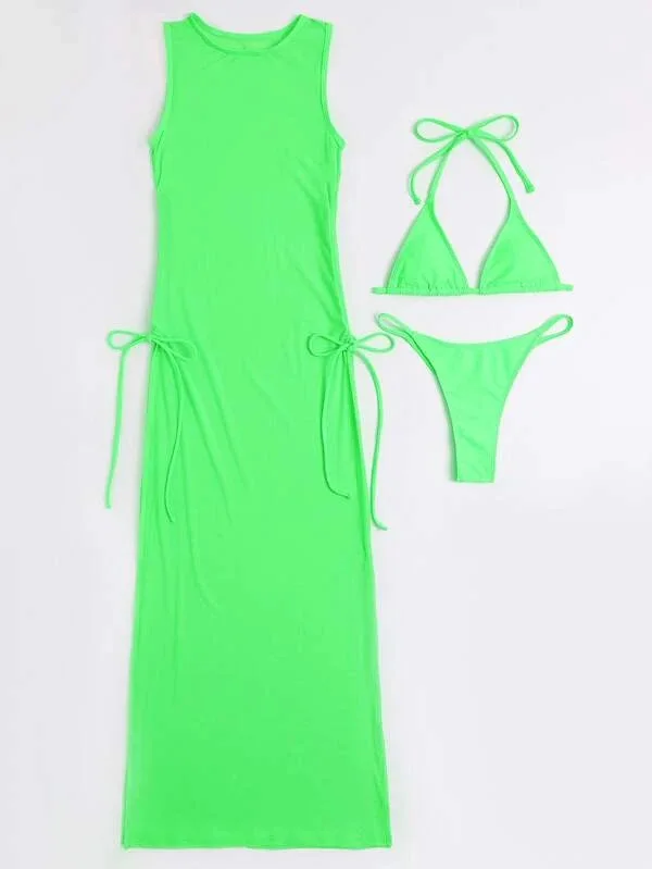Купальник-бикини, новинка 2021, сексуальный раздельный купальник, купальный костюм-тройка для девочек и женщин, неоново-зеленый