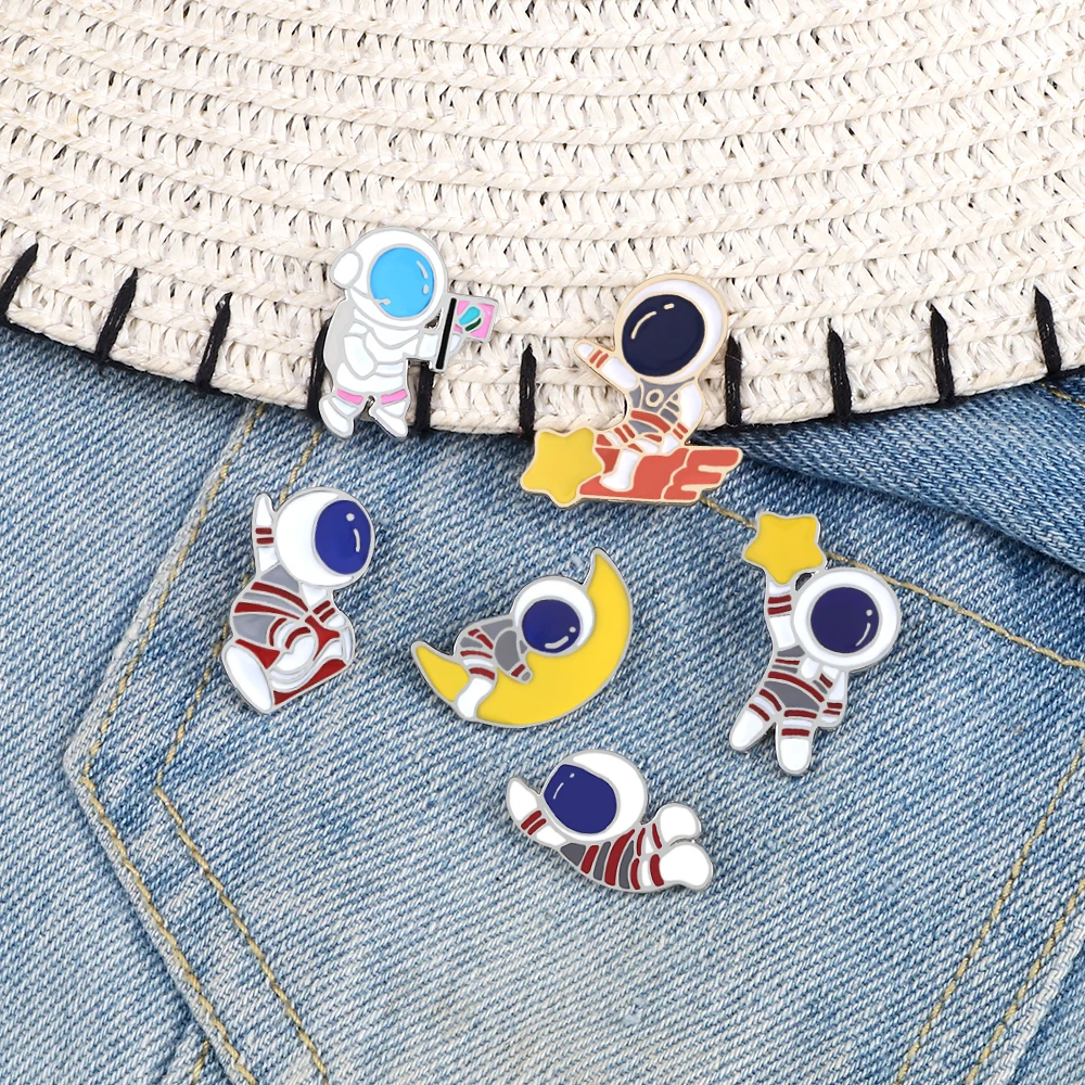 Женская брошка из джинсовой ткани, с эмалью, в виде звезды