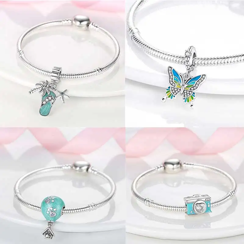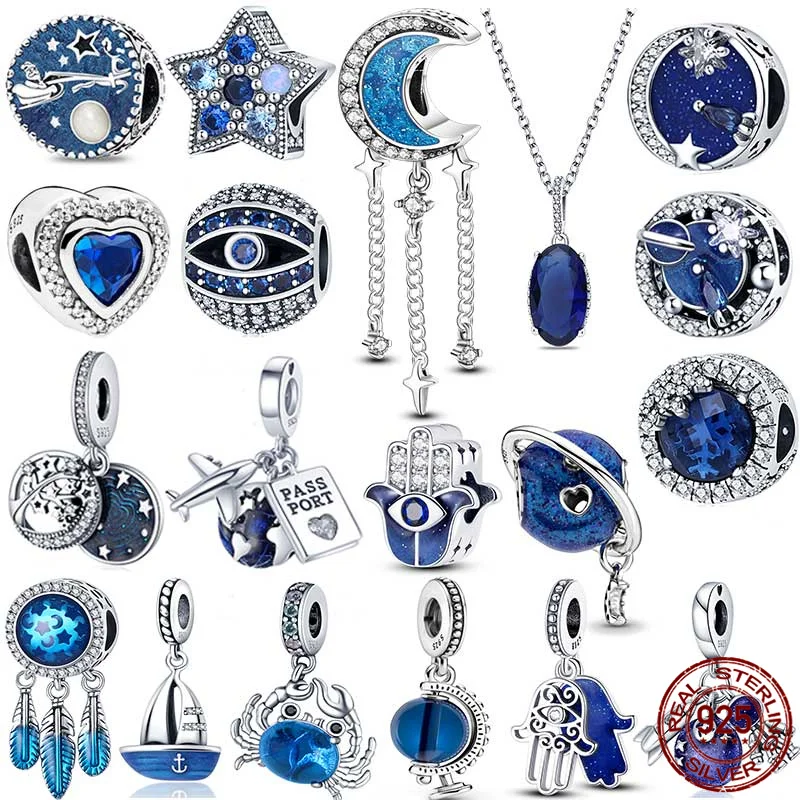 Подходит для браслета Pandach plata de ley 925 подвески из синего ц...