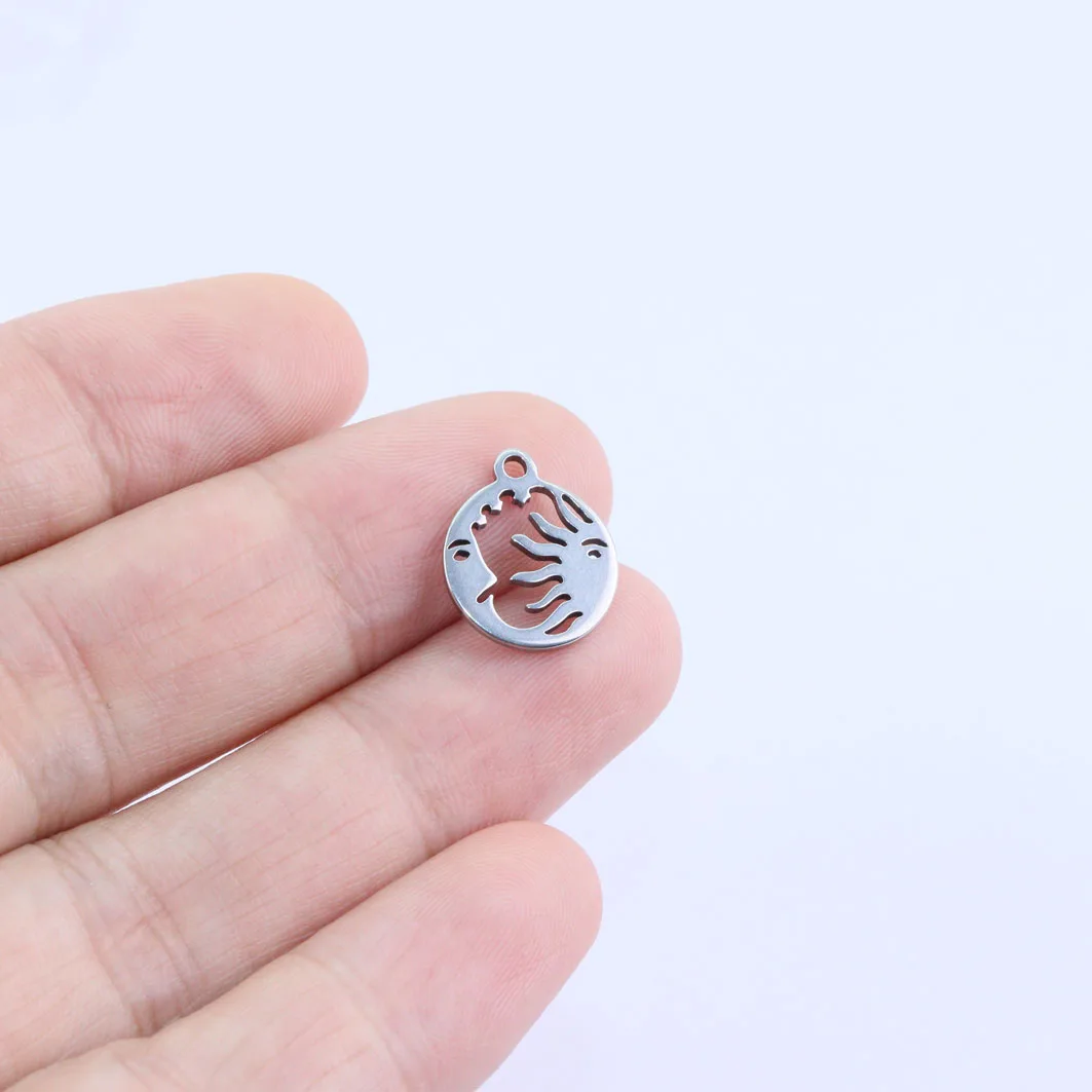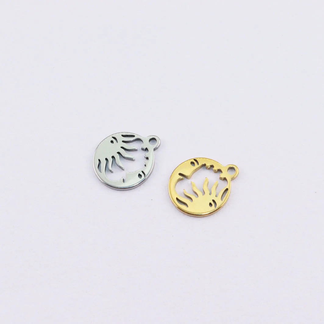 10 шт. 12 мм, оптовая продажа, подвески из нержавеющей стали в виде солнца, Луны, ожерелье, серьги, браслеты, бесцветные, 2 цвета