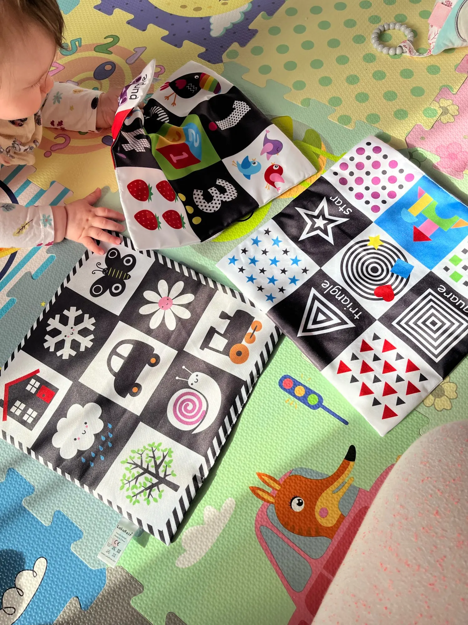 Мягкая тканевая книга для новорожденных, для детей 0-24 месяцев, обучающая, чернаябелая, газета звук шелеста