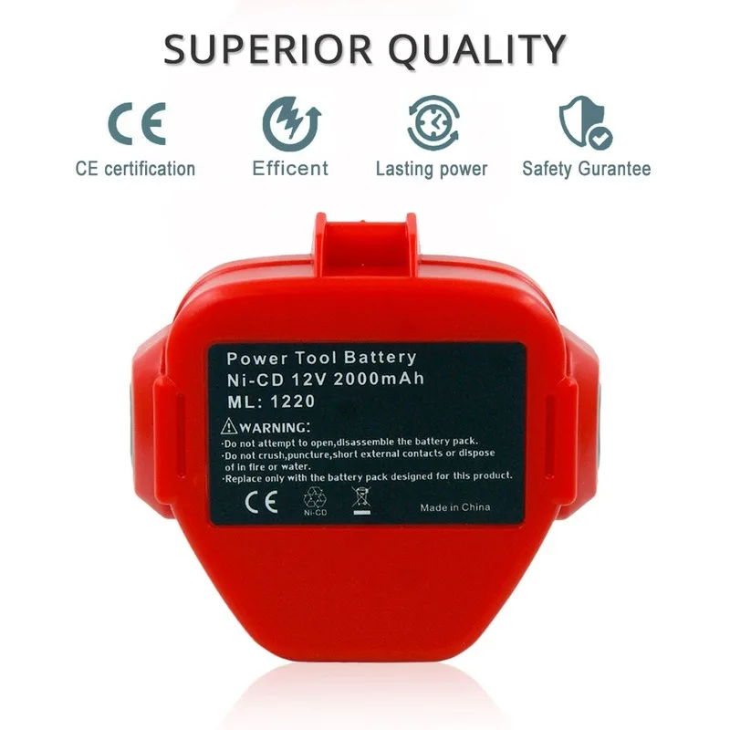 Сменная аккумуляторная батарея 12V 2000mAh 2.0A электроинструменты для Makita 1220,PA12,1222,1233S,1233SA,1233SB Спецификация:Тип батареи: Ni-CDНапряжение: 12 ВЕмкость: 2000 мАч Заменить для:1222; 1220; 192598-2; 193981-6; 638347-8; 638347-8-2; 192681-5,PA12, 1200, 1201, 1201A, 1202, 1202A, 192271-4, 192293-4 ,1220, 1222, 1233S, 1233SA, 1233SB, 1235, 1235A, 1235B Подходит для оригинальных инструментов Makita:Для серии Makita 1050:Для Makita 1050D, для Makita 1050DA, для Makita 1050DRA, для Makita 1050DWA, для Makita 1050DWD Для серии Makita 6900Для Makita 6914D, для Makita 6914DWDEДля Makita 6916D, для Makita 6916DWDE, для Makita 6916FDWDE, для Makita 6916FDWDE1Для Makita 6917D, для Makita 6917DWDE Для серии Makita 4000:Для Makita 4013D, для Makita 4191D, для Makita 4191DWA, для Makita 4191DZ, для Makita 4331D, для Makita 4331DWAE, для Makita 4331DWD, Для Makita 4331DWDE, для Makita 4331DZ Для Makita 6918D, для Makita 6918DWA, для Makita 6918DWAE, для Makita 6918DWD,Для Makita 6918DWDE, для Makita 6918DWF, для Makita 6918DWFE, для Makita 6918FDWDEДля Makita 6980FD, для Makita 6980FDWDE Для серии Makita 5000: Для Makita 5093DWD, для Makita 5093DZ, для Makita 5093D, для Makita 5093DWAДля серии Makita 8200 Для Makita 8270DWAE, для Makita 8270DWALE Для серии Makita 6200: Для Makita 6213D, для Makita 6213DWAE, для Makita 6213DWBE Для Makita 6216D, для Makita 6216DWBE, для Makita 6216DWDE Для Makita 6216D, для Makita 6216DWBE, для Makita 6216DWDE Для Makita 6223D, для Makita 6223DE, для Makita 6223DW, для Makita 6223D, Для Makita 6223DW, для Makita 6223DWE Для серии Makita 8400: Для Makita 8413D, для Makita 8413DWAE, для Makita 8413DWDE,Для Makita 8413DWFE, для Makita 8414DWFE Для Makita 6227D, для Makita 6227DW для Makita 6227DWBE, для Makita 6227DWE, для Makita 6227DWLE Для Makita DA Series:Для Makita DA312D, для Makita DA312DWA, для Makita DA312DWDДля Makita DA312DWF, для Makita DA312DZ, для Makita ML120, для Makita ML121 (головная лампа) Для Makita 6270DWAE, для Makita 6270DWLE, для Makita 6270DWALE, для Makita 6270dwwe, для Makita 6270DWPE Для серии Makita ML:Для Makita ML120, для Makita ML121 (головная лампа)Для Makita ML122, ML123 (флуоресцентный автомобильный светильник)Для Makita ML124 Для Makita 6271D, для Makita 6271DWAE, для Makita 6271DWE, для Makita 6271DWPE, для Makita 6271DWPLE Для серии Makita UB:Для Makita UB120D, для Makita UB120DWA, для Makita UB120DWBДля Makita UB121D, для Makita UC120D, для Makita UC120DAДля серии Makita 6300: для Makita 6313D, для Makita 6313DA, для Makita 6313DWAE, для Makita 6313DWBE, для Makita 6314DWBE Для серии Makita UC:Для Makita UC120DR, для Makita UC120DRA, для Makita UC120DW, для Makita UC120DWAДля Makita 6316D, для Makita 6316DWA, для Makita 6316DWAE, для Makita 6316DWB, для Makita 6316DWBE Для Makita UC120DWAE, для Makita UC120DWD, для Makita UC170D, для Makita UC170DWDДля Makita 6317D, для Makita 6317DWAE, для Makita 6317DWDE, для Makita 6317DWDRE, для Makita 6317DWFE, для Makita 6319D, для Makita 6319DWFE, для Makita 6327DWE Для серии Makita VR:Для Makita VR250D, для Makita VR250DA, для Makita VR250DWAE, для Makita VR251D Для серии Makita 6800:Для Makita 6835D, для Makita 6835DA, для Makita 6835DWA, для Makita 6835DWAE, для Makita 6835DWB, для Makita 6835DWD Для Makita VR251DWDE, для Makita ML123 (флуоресцентный автомобильный светильник),Для Makita SC131D Посылка:1 x совершенно новый аккумулятор для Makita 12v Ni-cd 2000mah батареи