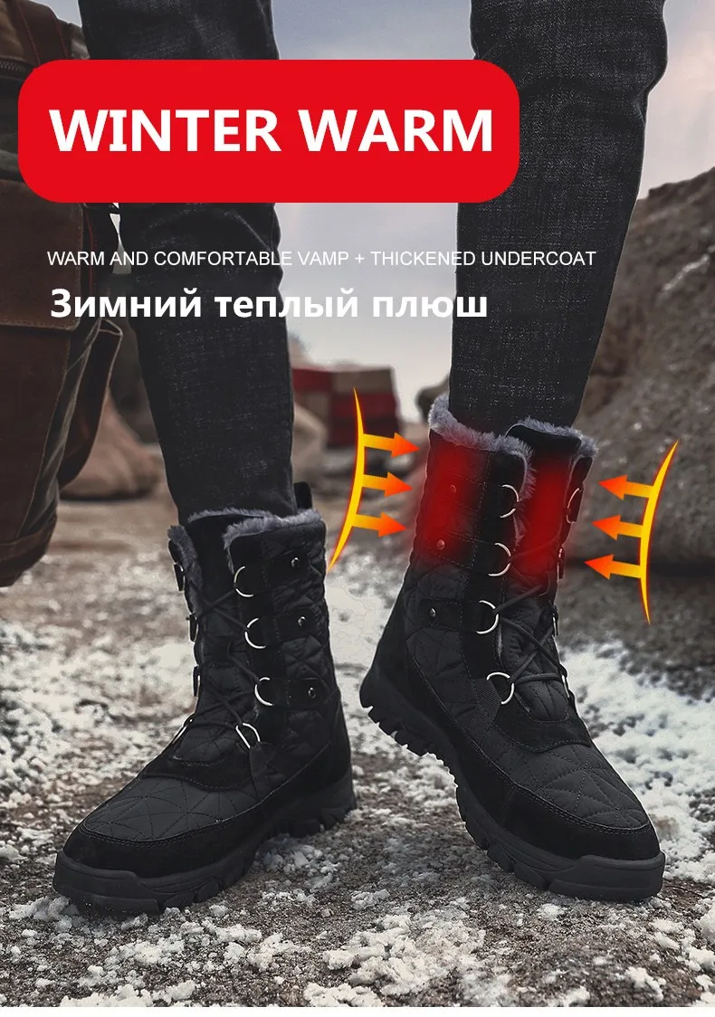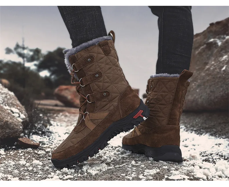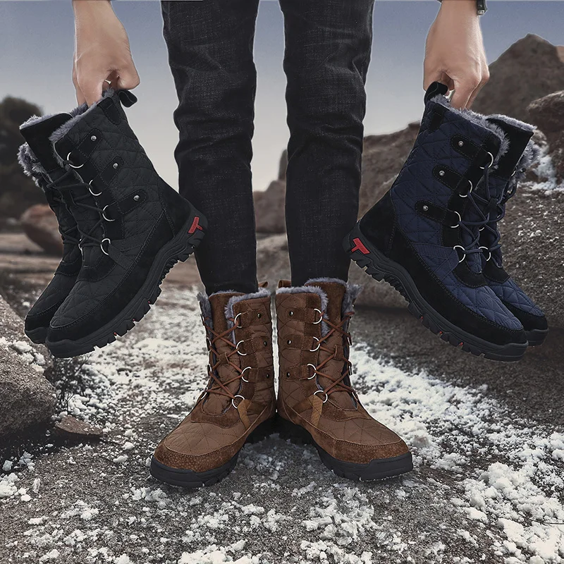Ботинки мужские зимние, на шнуровке, с высоким берцем, водонепроницаемые, Нескользящие