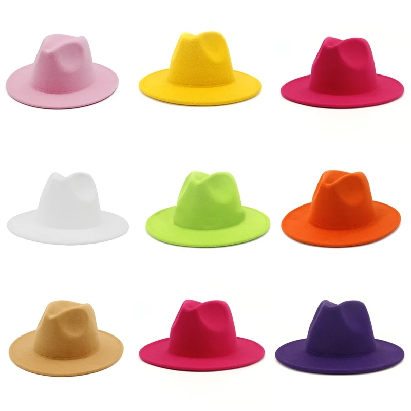 Бесплатная доставка, однотонная Федора в стиле унисекс, женская шляпа с широкими полями, 21 цвет, Джазовый Топ, шляпа на осень и зиму, британская ретро Панама, шляпа