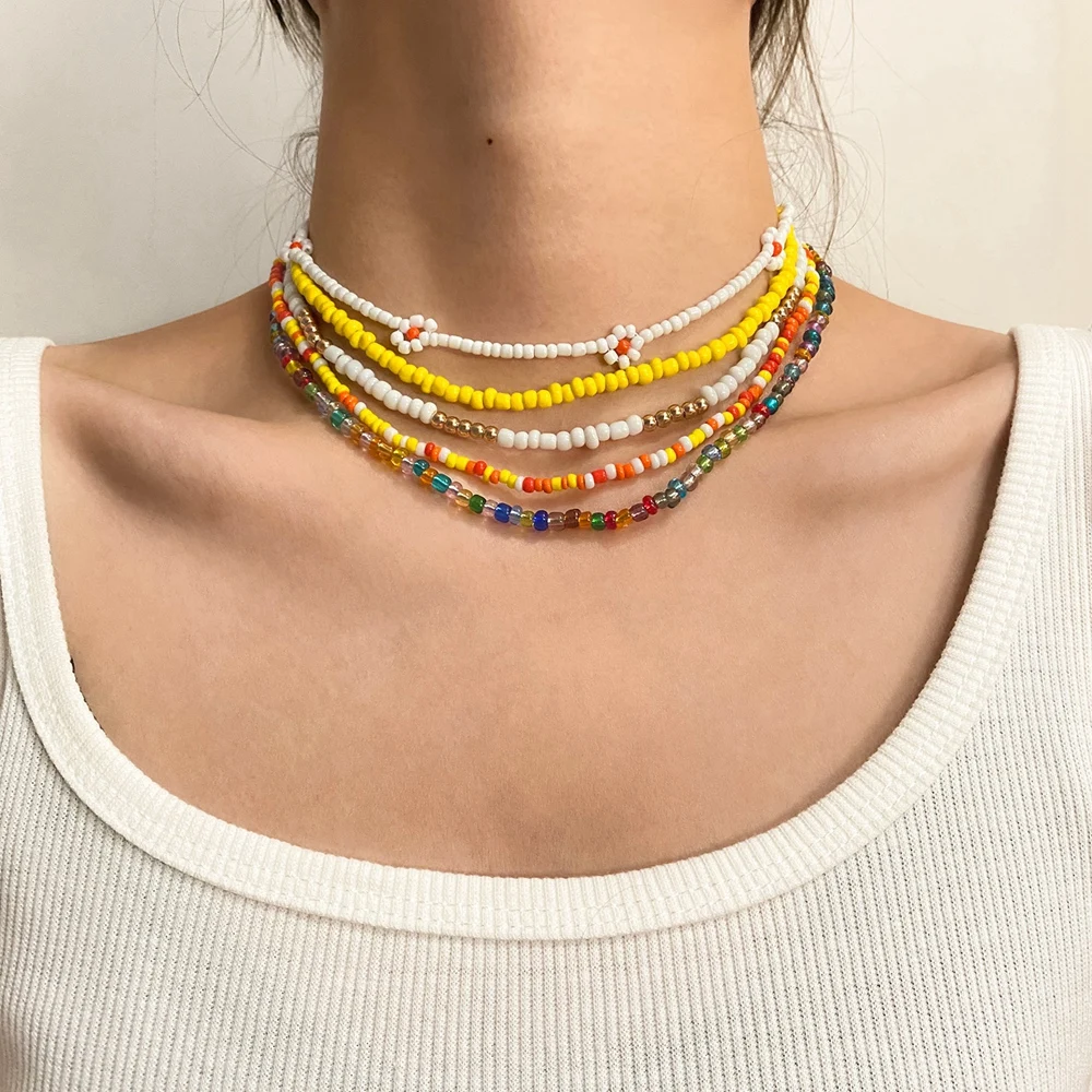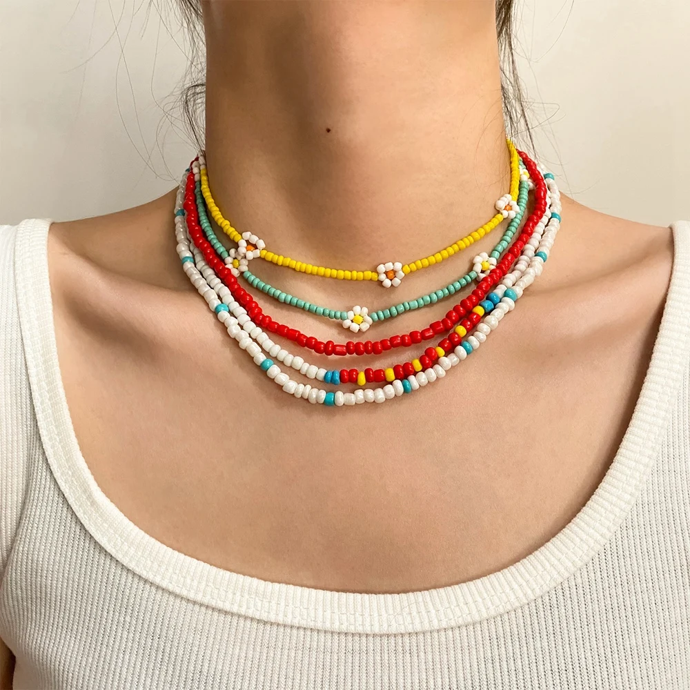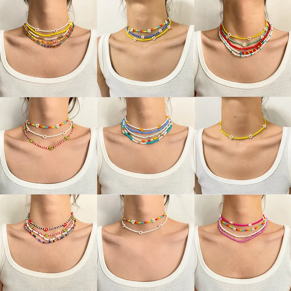 DAXI 2021 Новинка корейский милый Маргаритка цветные бусины очаровательное короткое ожерелье-чокер для женщин