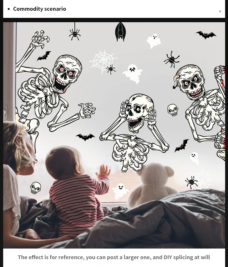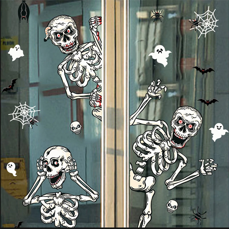 Статическая наклейка s, Хэллоуин, скелет, тыква, дизайнерские декор...