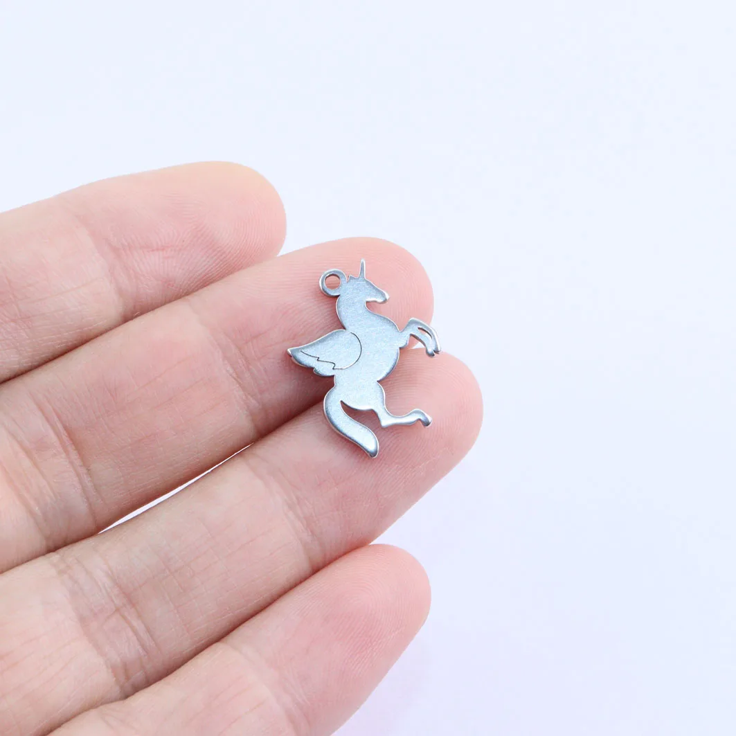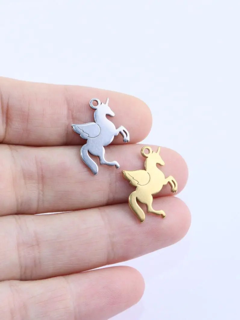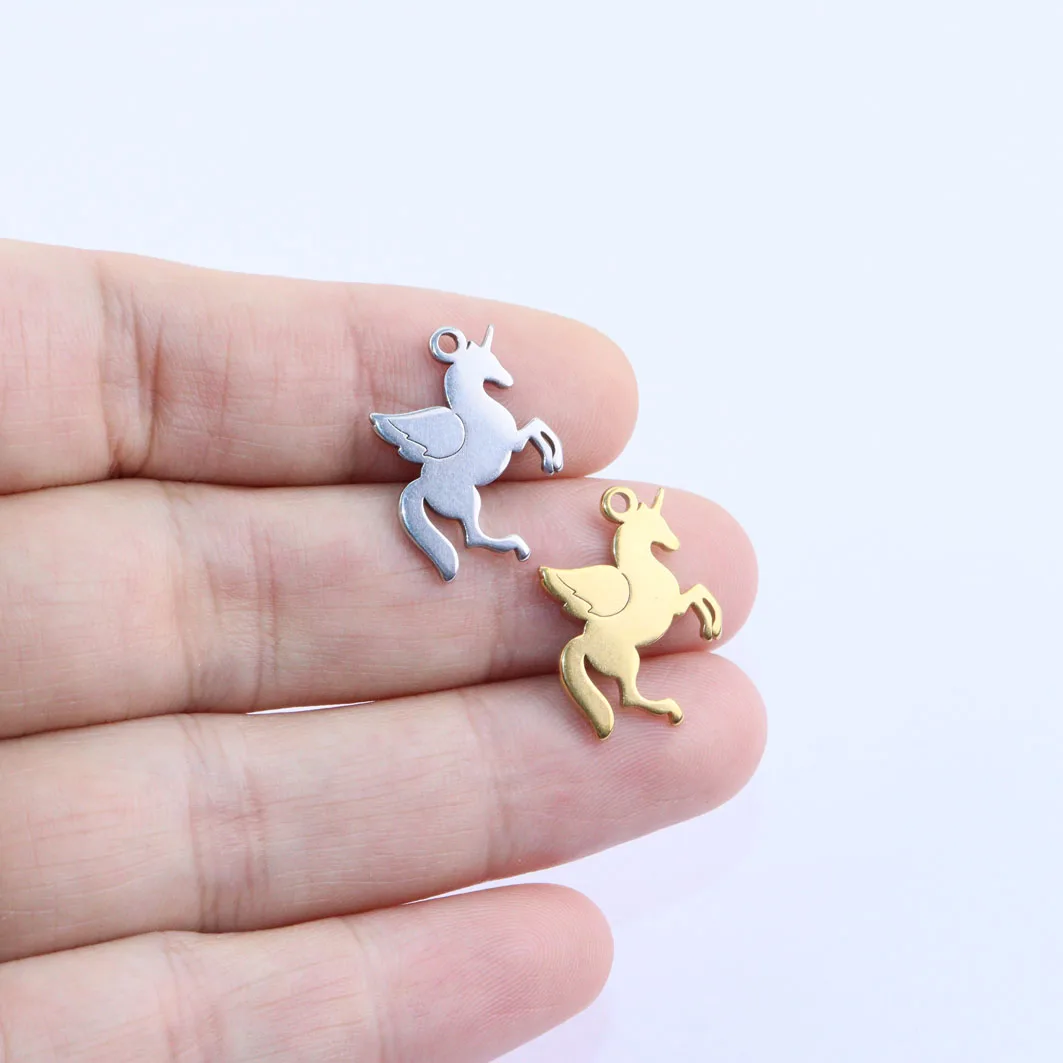 10 шт. 20 мм, оптовая продажа, шармы из нержавеющей стали в виде единорога, подвеска сделай сам, ожерелье, серьги, браслеты, бесцветные, 2 цвета