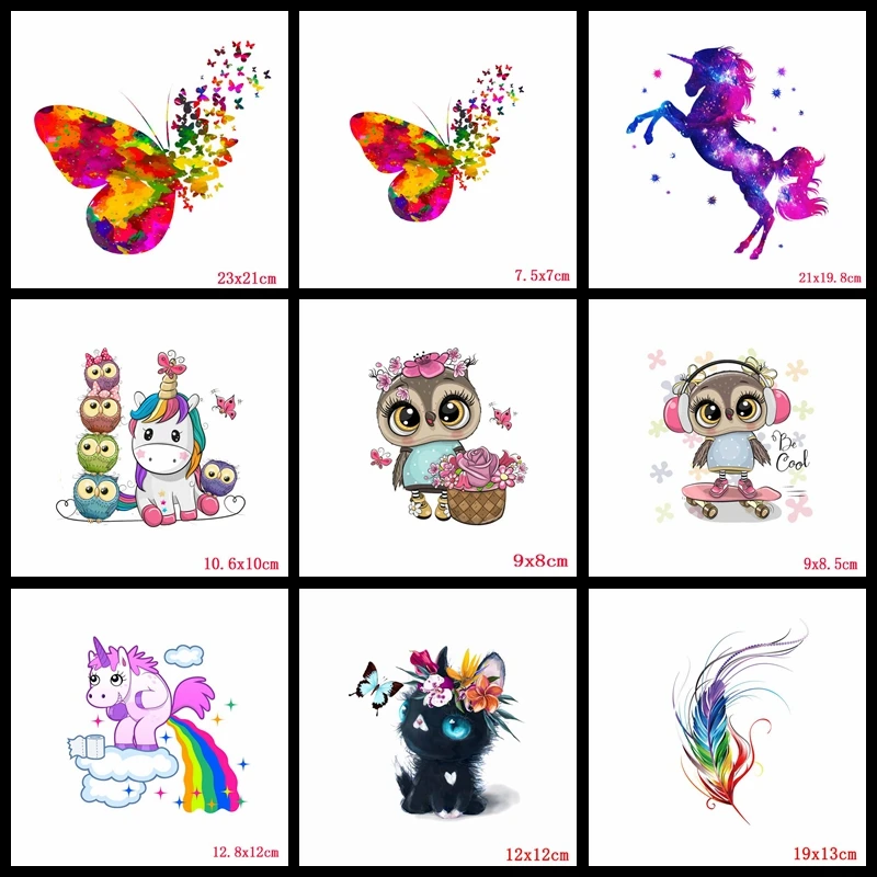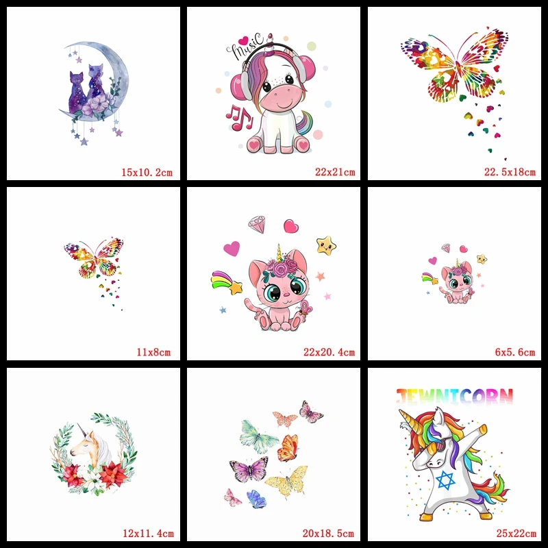 Бабочка Единорог кошка теплопередача для одежды аппликация мультфильм животное железо на Переводные патчи для одежды наклейкиМинимальный заказ: 1 шт.Размер: как на картинке