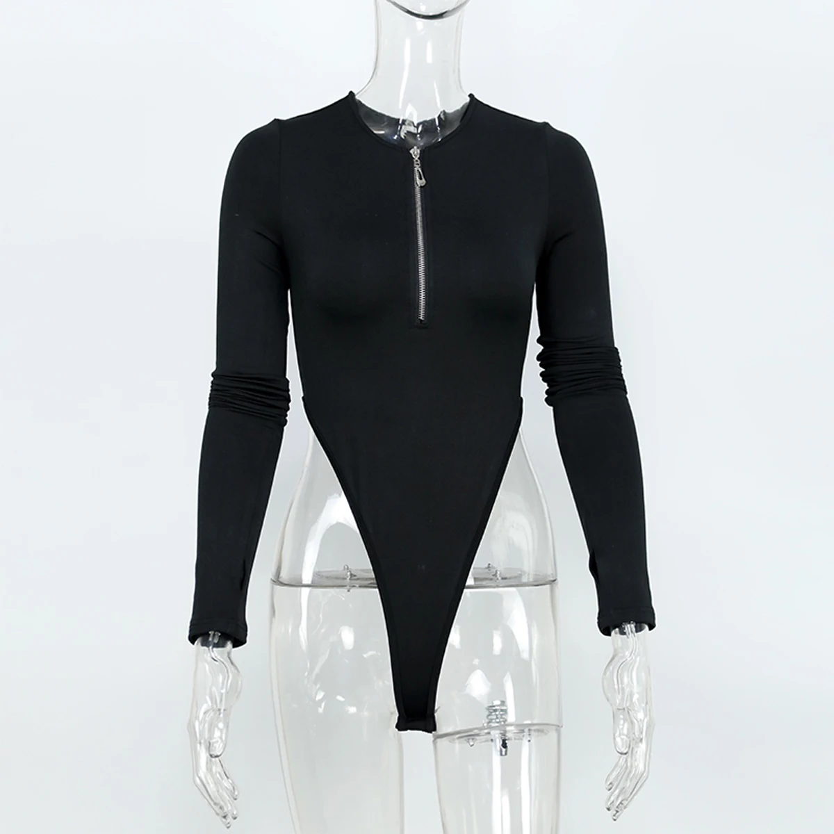 Сексуальный женский боди на молнии с длинным рукавом, Модный облега...