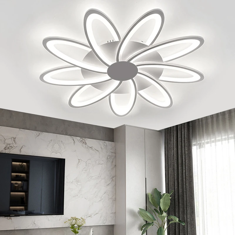 Светодиодная люстра с цветами, потолочный светильник для гостиной, Современная потолочная лампа для спальни с дистанционным управлением, лампа для домашнего декора