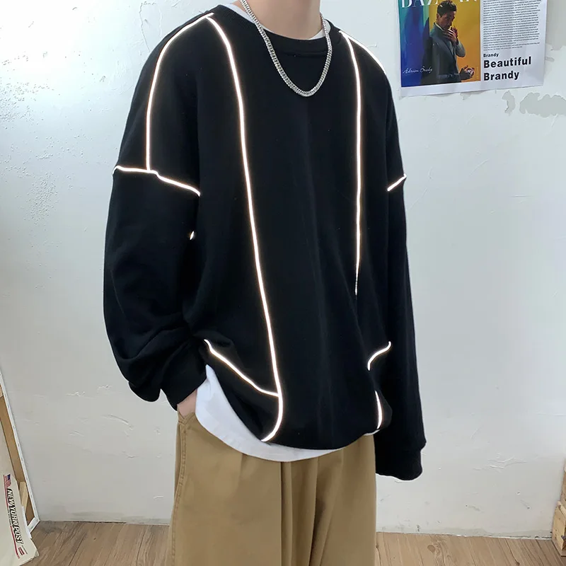 Светоотражающий светящийся свитшот для мужчин и женщин, пуловер в стиле хип-хоп, уличная одежда, Дизайнерские повседневные худи в стиле Харадзюку большого размера в стиле панк, осень 2021