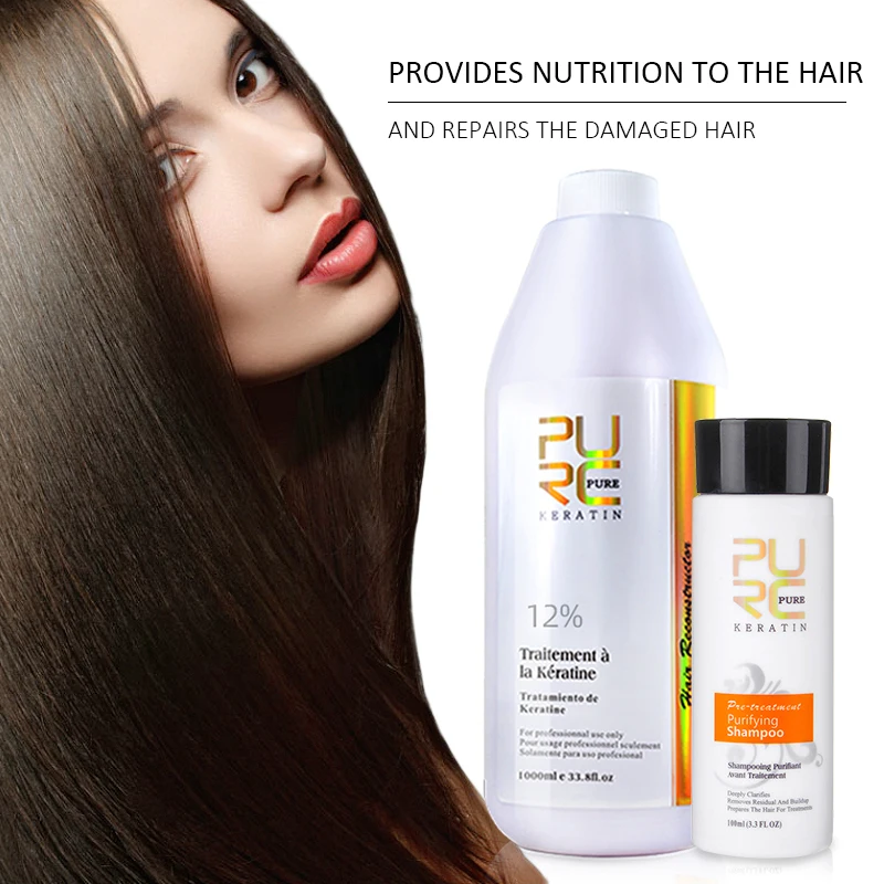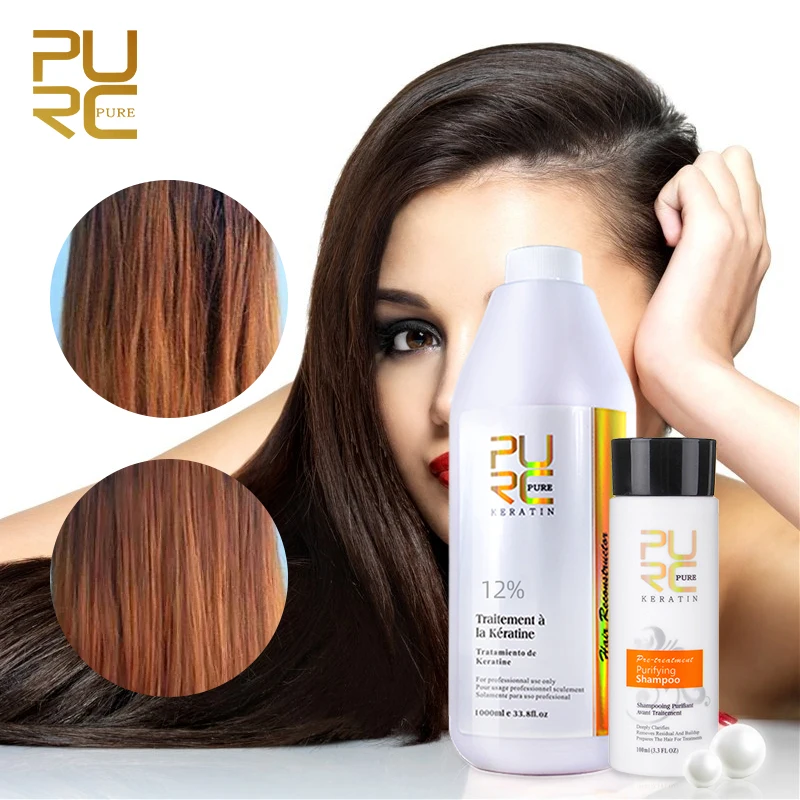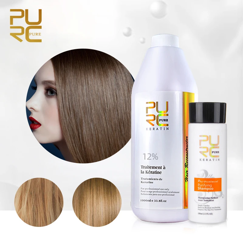 Набор для выпрямления и сглаживания волос PURC 12%, бразильский кератин и очищающий шампунь, 1000 мл