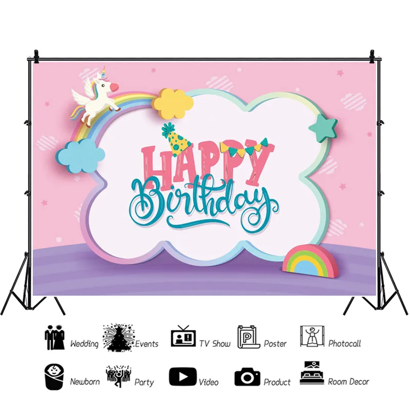 Фон для фотосъемки с днем рождения, радуга, единорог, звезда, индивидуальный баннер, фотозона, детский фон для фотосъемки