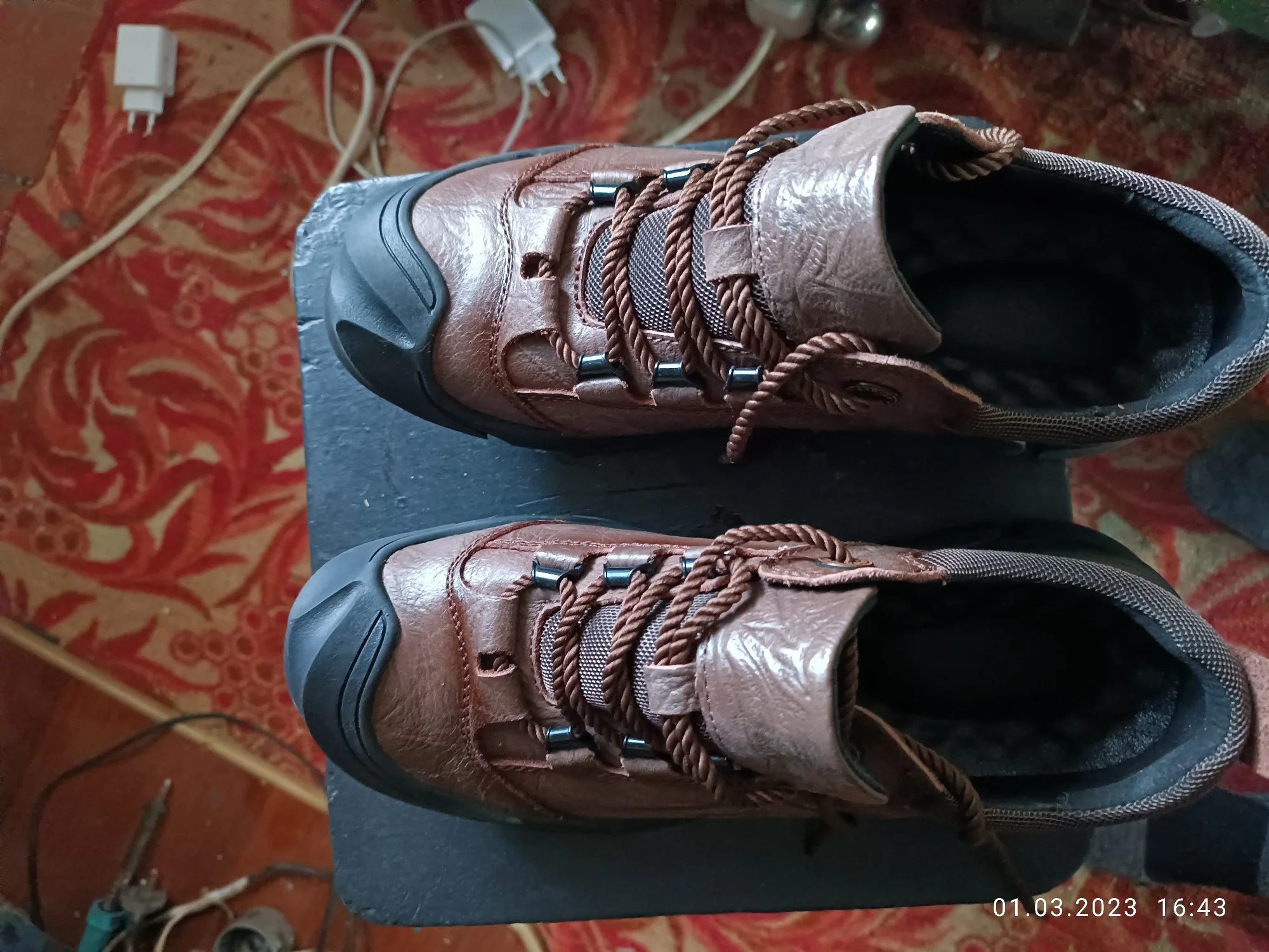 брала мужу по размеру стопы,по таблице, размер подошёл, пятка удобная,мужу понравились, выглядят добротно,вроде бы кожа,поносит дополню отзыв. пока рекомендую, выглядят аккуратно, не дешего.