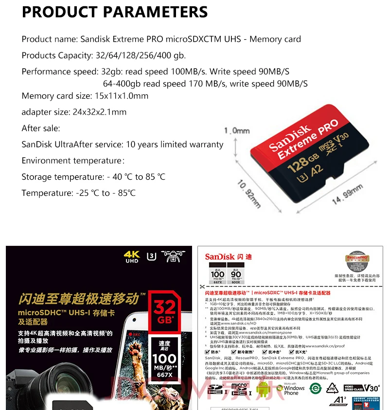 Карта памяти SanDisk Extreme ProUltra Micro SD, 128 ГБ, 64 ГБ, 256 ...