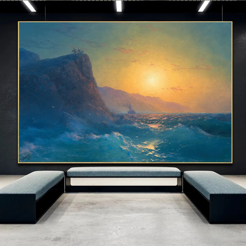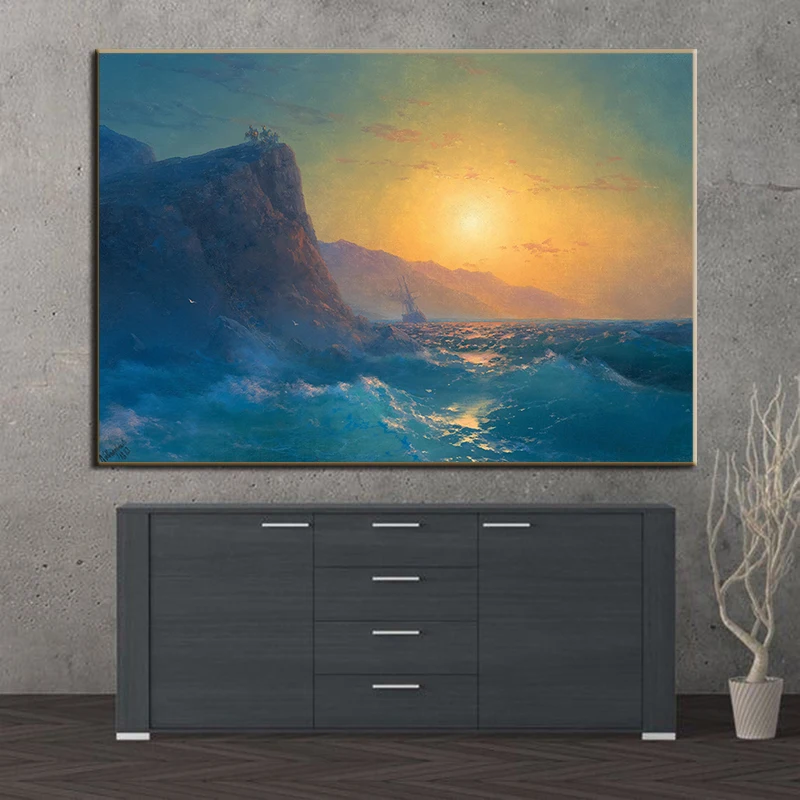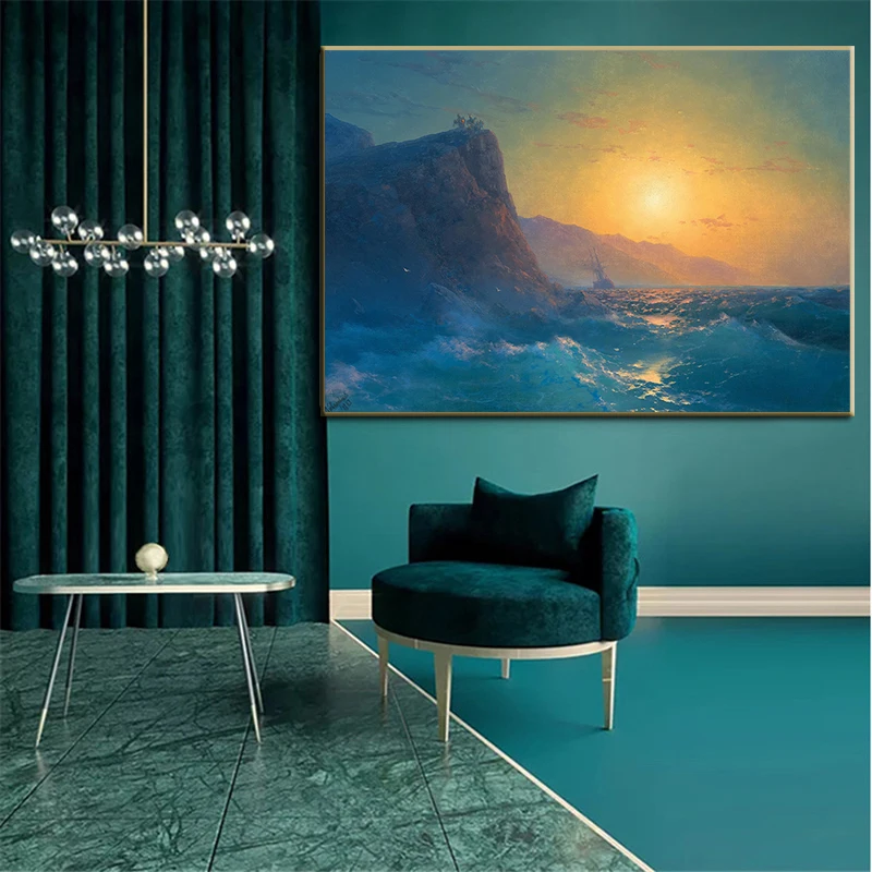 Абстрактный пейзаж, картина маслом на холсте, настенный художественный постер, движущийся вид на море с открытым побережением на закате, художественная картина, домашний декор