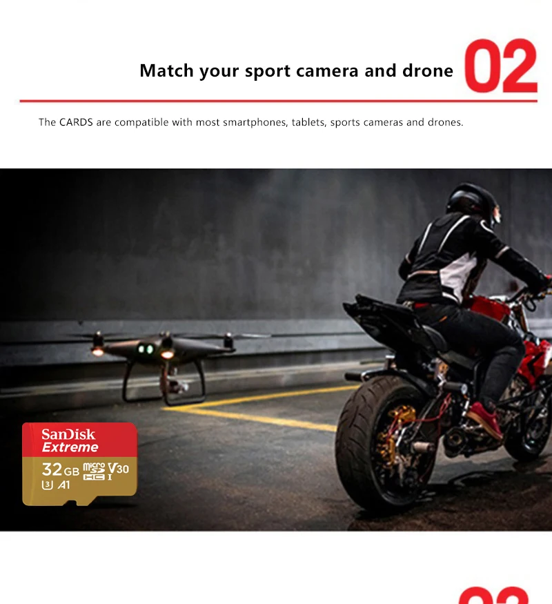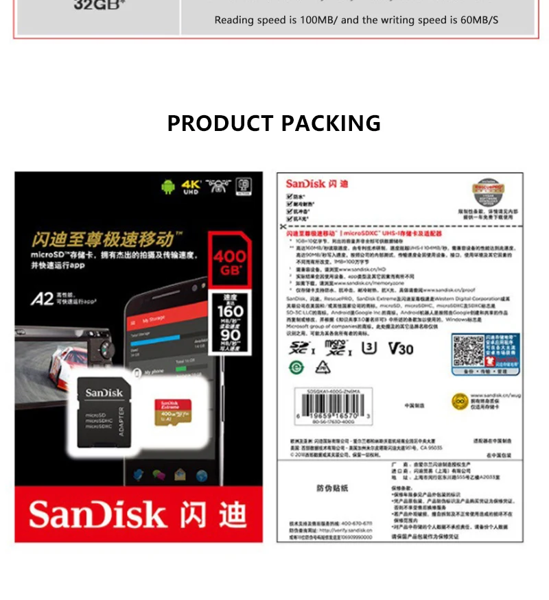 Micro SD карта памяти Sandisk, A2 A1 V30 U3, 64 ГБ 32 ГБ, 128 ГБ