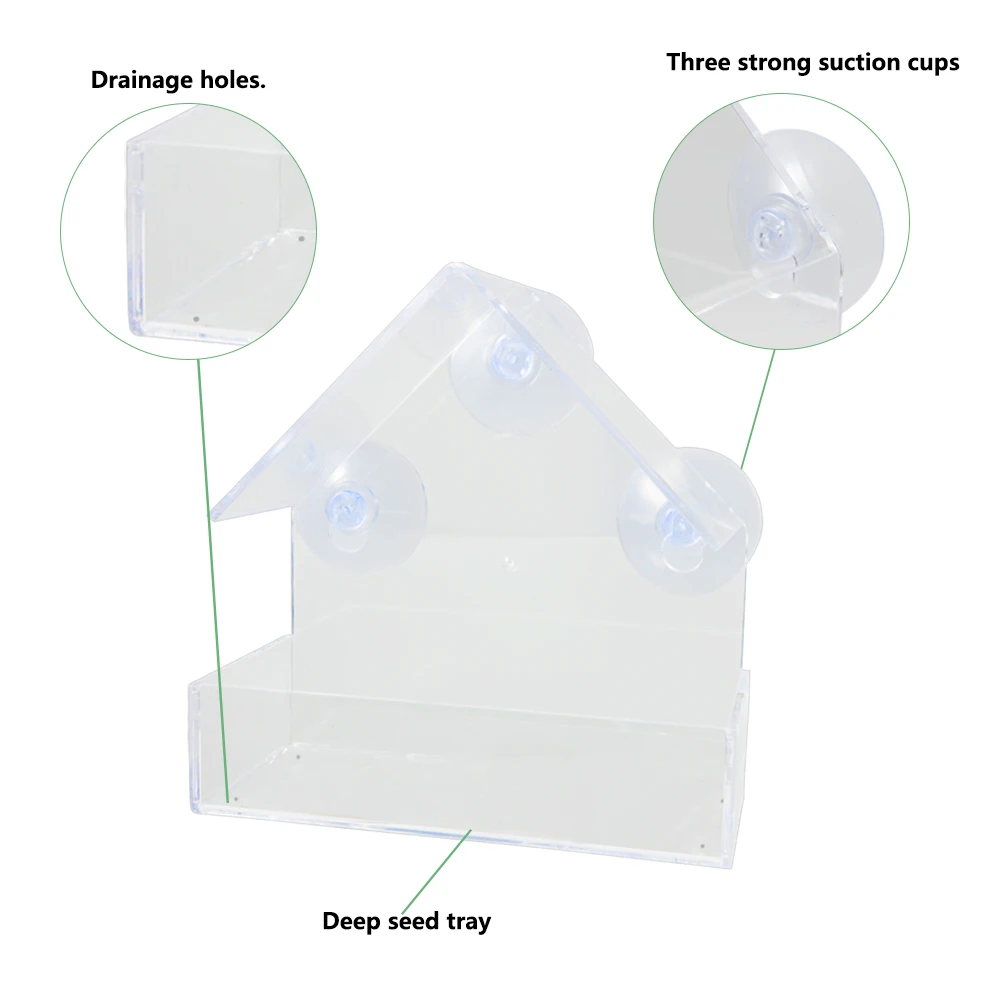 Кормушка для птиц, акриловый прозрачный поднос с присоской для наблюдения за окном, для домашних животных