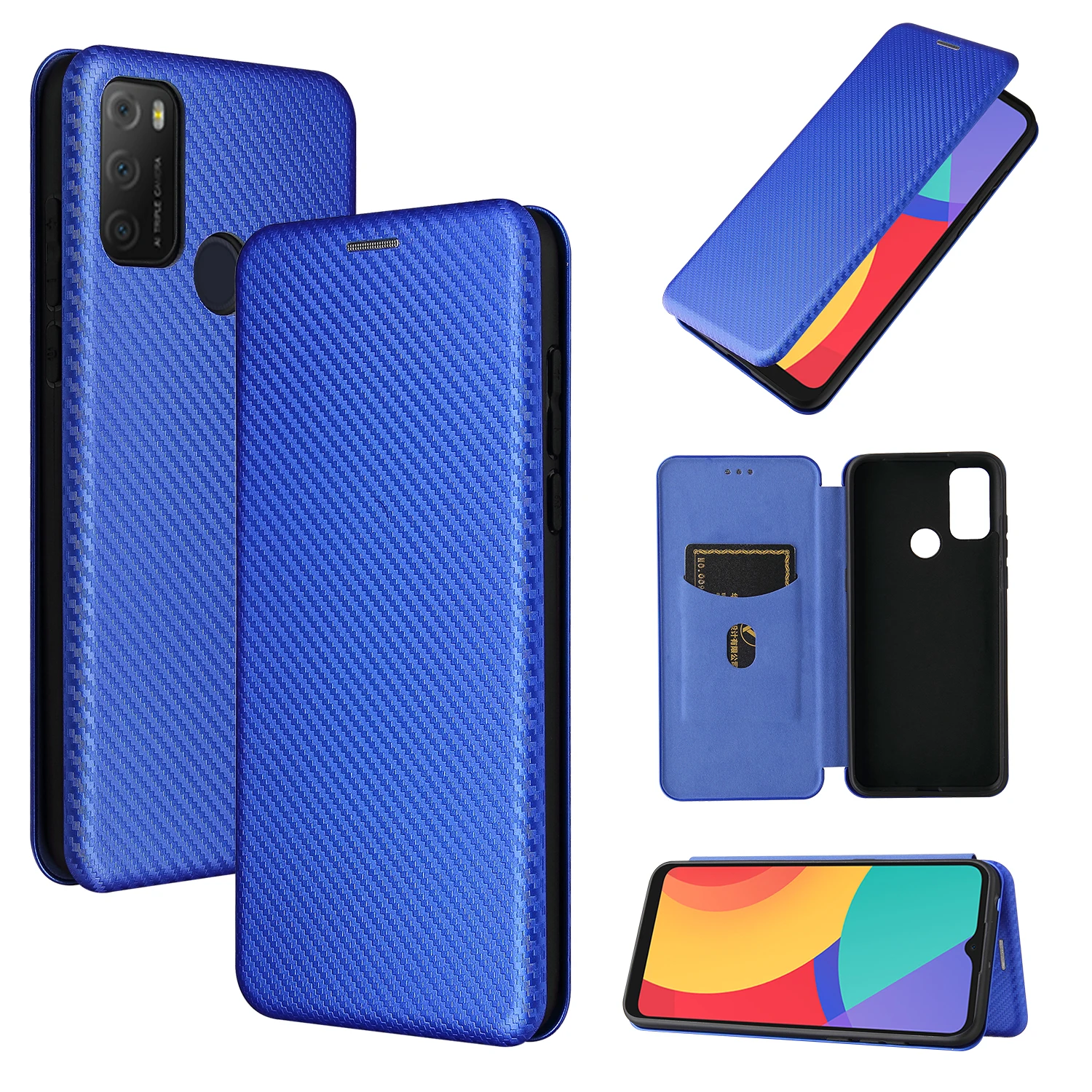 Магнитный чехол-книжка из углеродного волокна для Alcatel 1S 2021, кожаный чехол-кошелек, чехол-подставка для Alcatel 3L 2021 1S 2021