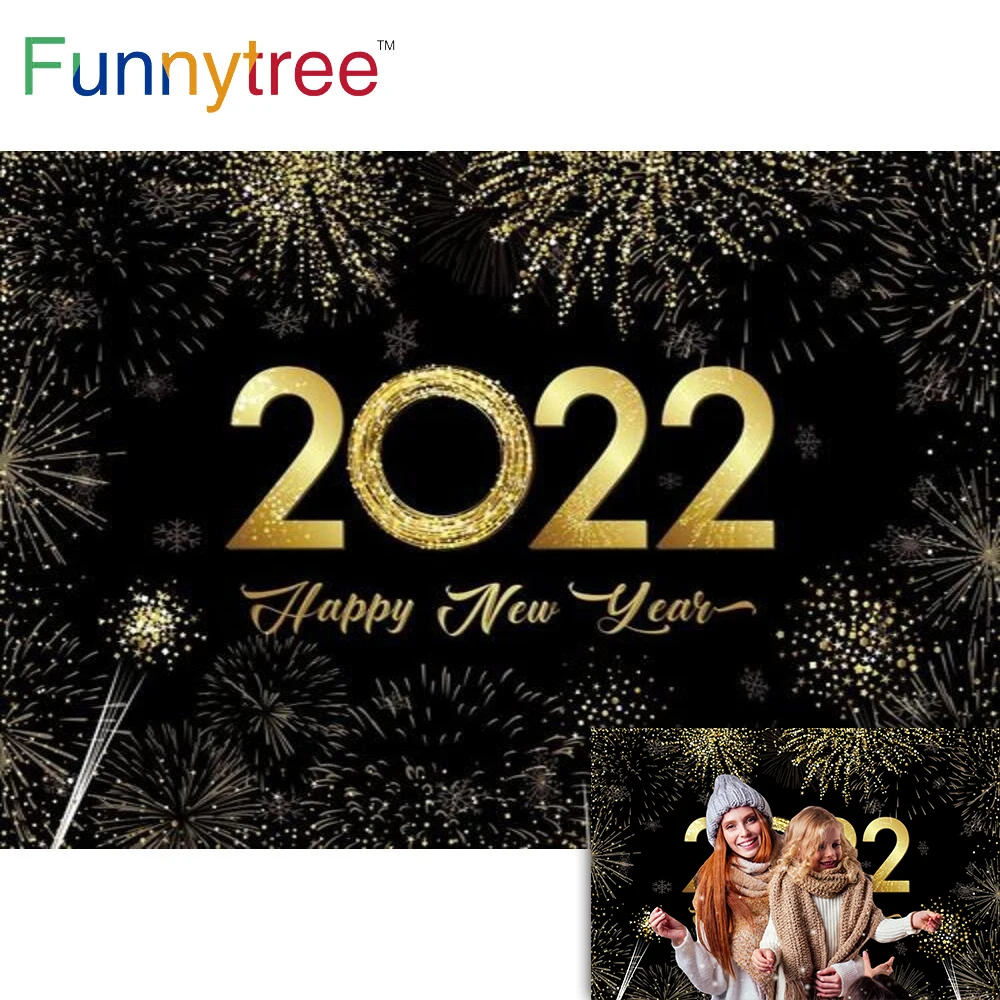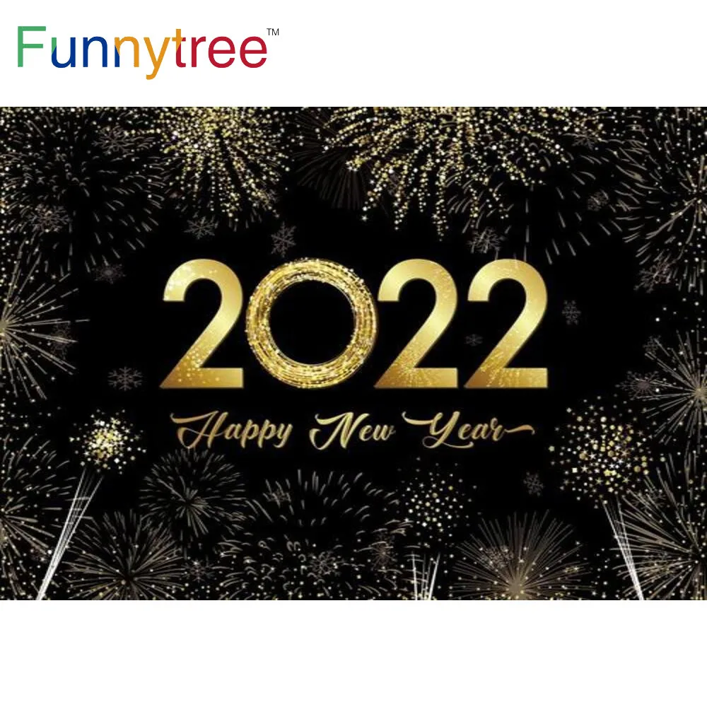 Фон Funnytree 2022 для новогодвечерние, фейерверки зимние черные золотые блестящие фейерверки для празднования праздника, фотозона
