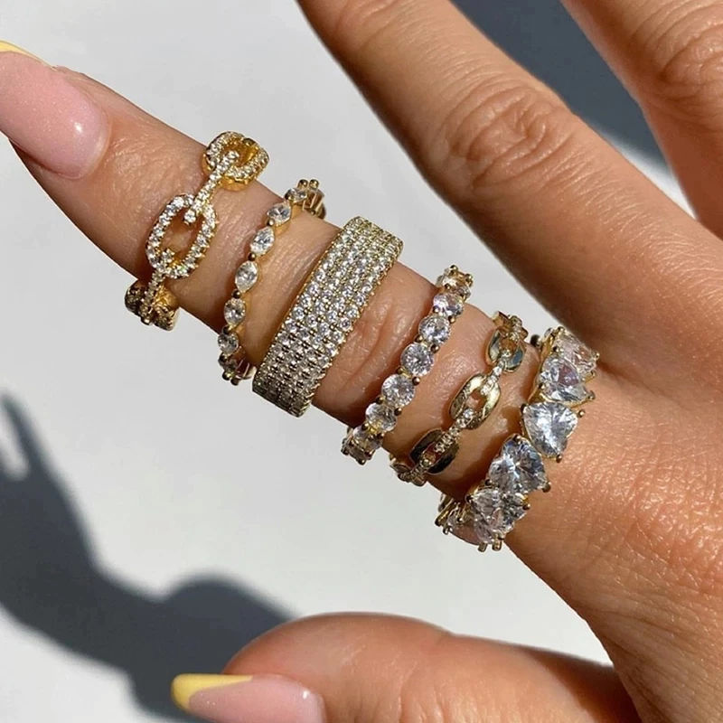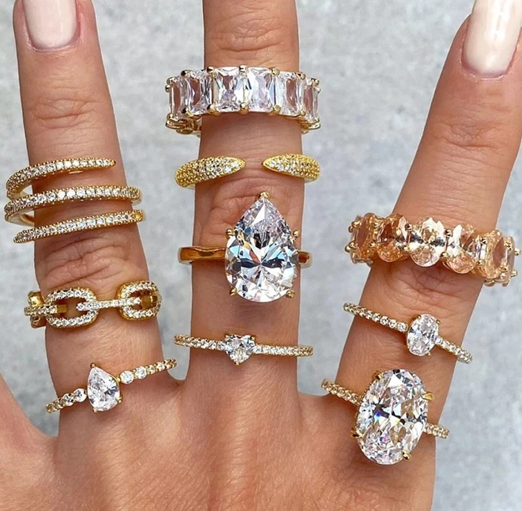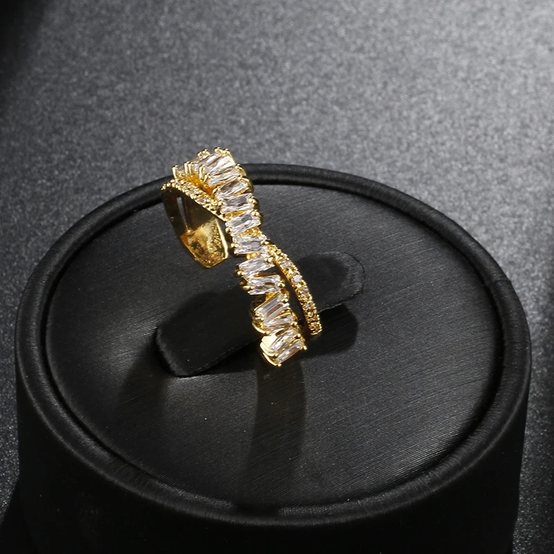 Новинка 2022, модные роскошные золотые кольца для женщин, простое кольцо с квадратным кубическим цирконием, Женское Обручальное ювелирное изделие, открытые кольца
